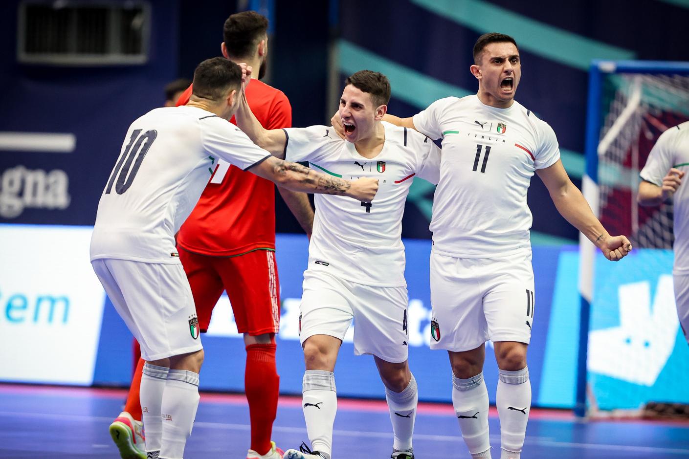 LA PARTITA. Rispetto al primo match in tribuna vanno Motta, Esposito, Marcelinho e Molitierno, oltre ovviamente a Mammarella, aggregato al gruppo da inizio raduno ma non disponibile. In quintetto c'è Lorenzo Pietrangelo, assieme a Murilo, Fortini, Merlim e De Oliveira. L'approccio alla gara dell'Italia è promettente, tanto che a metà della prima frazione Gui, perfettamente assistito dal solito Merlim, sblocca la sfida con un siluro volante. Il 2-0 arriva a stretto giro, con lo stesso Gui che serve Caponigro il quale, appena entrato, s'inventa un colpo di tacco geniale che vale il raddoppio. Per il calciatore della Feldi Eboli è la prima rete con la maglia della Nazionale. Il primo tempo della squadra di Bellarte è ai limiti della perfezione, ma l'Iran è una grande squadra e nel finale di frazione riesce ad acciuffare il pari con la doppietta del solito Abbasi. Nel secondo tempo però, è ancora una grande Italfutsal, con Bellarte che si gioca il jolly Berthod: il portiere dell'Under 19 gioca con grande personalità un secondo tempo tiratissimo. Al quinto Nicolodi finalizza una super azione di Musumeci per il gol del 3-2, poi proprio dai piedi di Berthod nasce la manovra del nuovo doppio vantaggio. Il portiere dell'Aosta lancia con uno scavino perfetto Stringari, lo stop del 14 è perfetto e la palla a rimorchio per De Oliveira è solo da spingere in rete. Forte del 4-2 l'Italia controlla il ritmo della gara, ma l'Iran inserisce il portiere di movimento, riuscendo sempre con Abbasi a riportarsi a -1. Merlim e compagni stringono i denti fino al suono della sirena, portando a casa una vittoria dal sapore dolcissimo nell'ultima uscita prima di concentrarsi su Euro 2022.