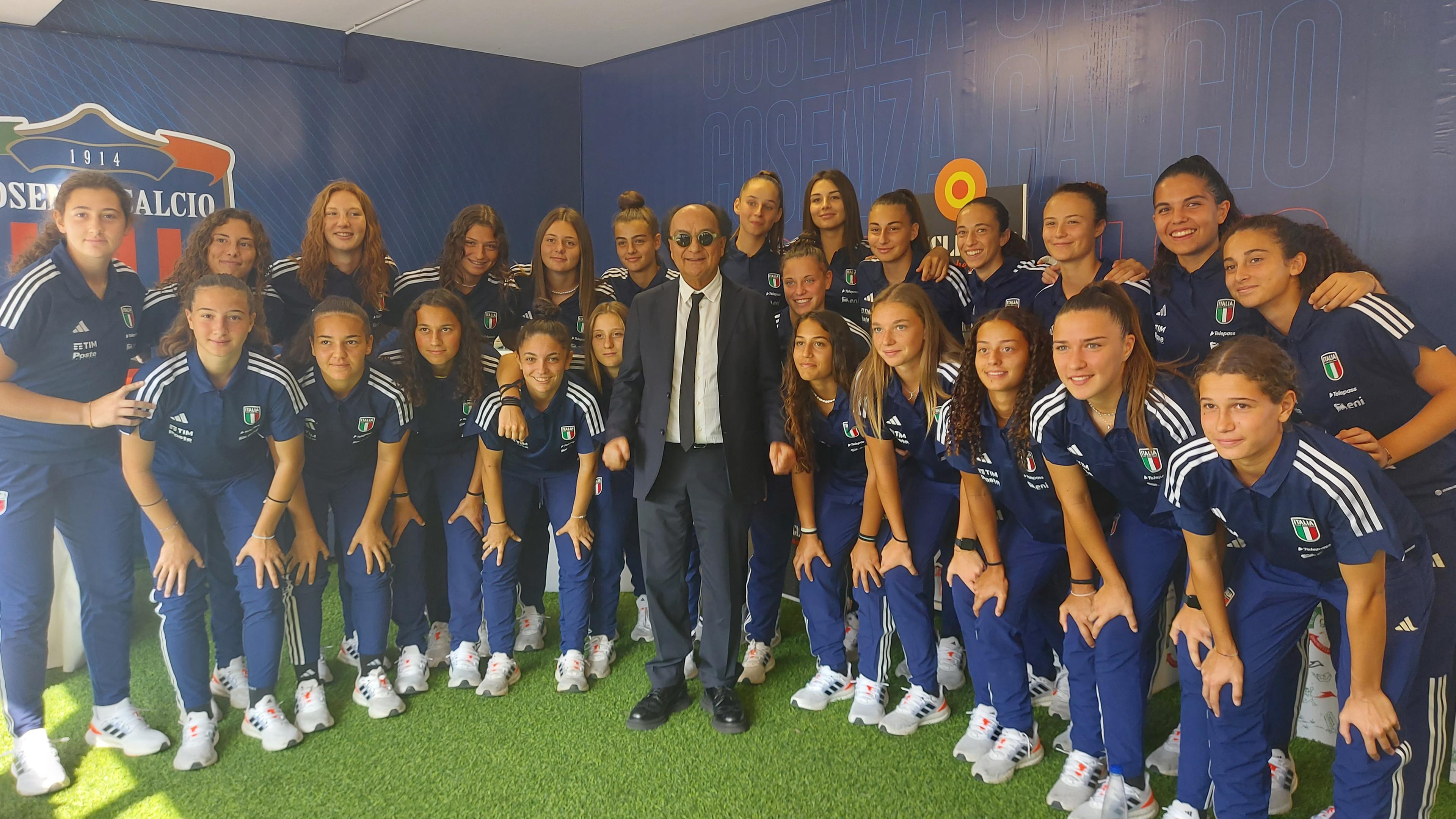 Un'accoglienza speciale, della città di Cosenza, del club e dei tifosi rossoblù. Pochi minuti prima dell'inizio di Cosenza-Lecco, partita valida per il campionato di Serie B, le ragazze della Nazionale Under 17 femminile impegnate da lunedì al 'San Vito - Gigi Marulla' nel Round 1 di qualificazione all'Europeo di categoria sono scese in campo per una foto ricordo, tra gli applausi del pubblico.
