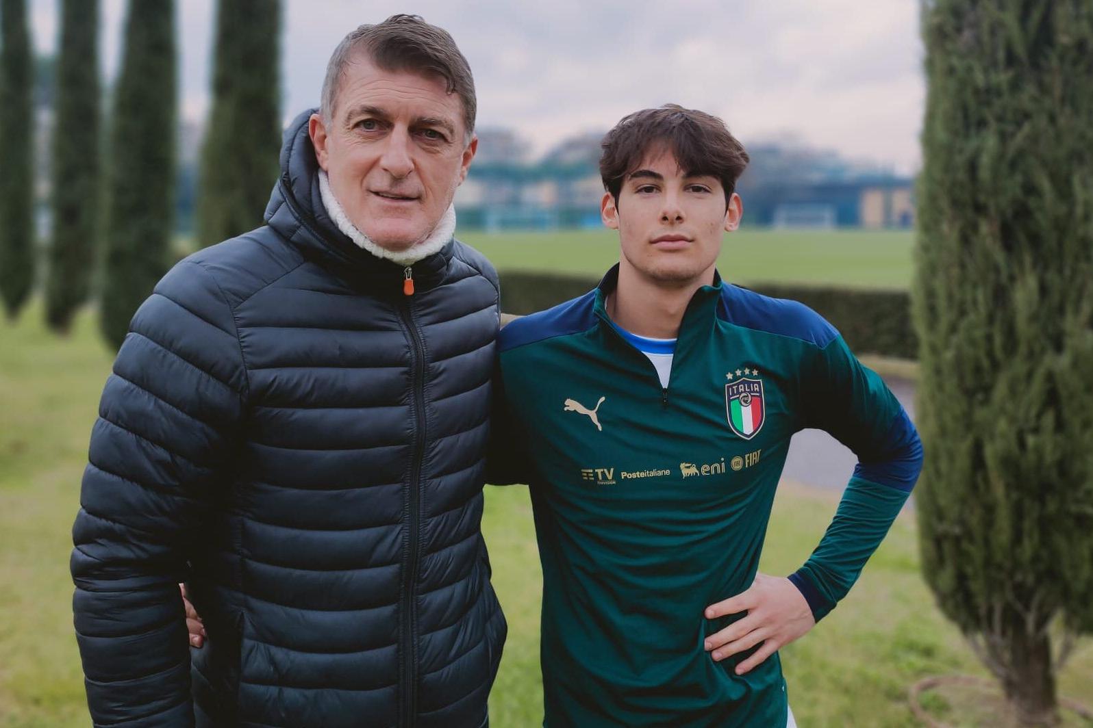 Trai i 28 giocatori presenti allo stage, che ricordiamo essere prevalentemente nati nel 2002, c’era un giocatore che ha raccolto il testimone lasciatogli dal padre, Mattia Pagliuca. Alla sua prima convocazione in Azzurro, Mattia ha cominciato a mettersi sulle orme di Gianluca, portiere che ha scritto pagine importanti nella storia della Nazionale e non solo: vice campione del mondo in America nel 1994 con 39 presenze tra i pali Azzurri. Mattia nasce calcisticamente nelle giovanili del Bologna, società presso cui milita a tutt’oggi, : "Mi considero un bolognese doc – dice con orgoglio – e varcare i cancelli di Coverciano due giorni fa per me è stata un’emozione grandissima". A differenza del padre, sceglie un ruolo opposto, quello di attaccante – falso nueve, come ama definirsi - e si è fatto notare nel campionato Primavera dove, nelle 5 partite disputate prima dell’interruzione, ha realizzato due reti e 5 assist e, in aggiunta, la ciliegina dell'esordio in Serie A contro la Roma. Un rendimento che lo ha portato all’attenzione degli osservatori federali, tanto da fargli giungere la prima convocazione in questa Nazionale giovanile: "Un sogno che si è realizzato e farò del tutto per continuare a coltivarlo. Calcare i campi di Coverciano – aggiunge l’Azzurrino -, gli stessi calpestati tante volte da mio padre, mi riempie d’orgoglio". Anche se poi, la vita non smette mai di riservare sorprese: "Mio padre – sorride Mattia - cominciò da attaccante per poi scegliere di stare tra i pali e diventare un grande portiere. Io, nelle giovanili del Bologna, ho cominciato da portiere ma poi ho deciso che i gol era meglio farli che prenderli". E c’è da prenderlo in parola, visto che nell’ultima partita ‘in famiglia’ disputata oggi sul campo 2 di Coverciano, ha suggellato il suo esordio con la rete del momentaneo pareggio (poi finita 2-1 per la squadra blu, due gol di N’Gbesso) alla fine del primo tempo. Suo padre, sugli spalti, a gioire con lui.