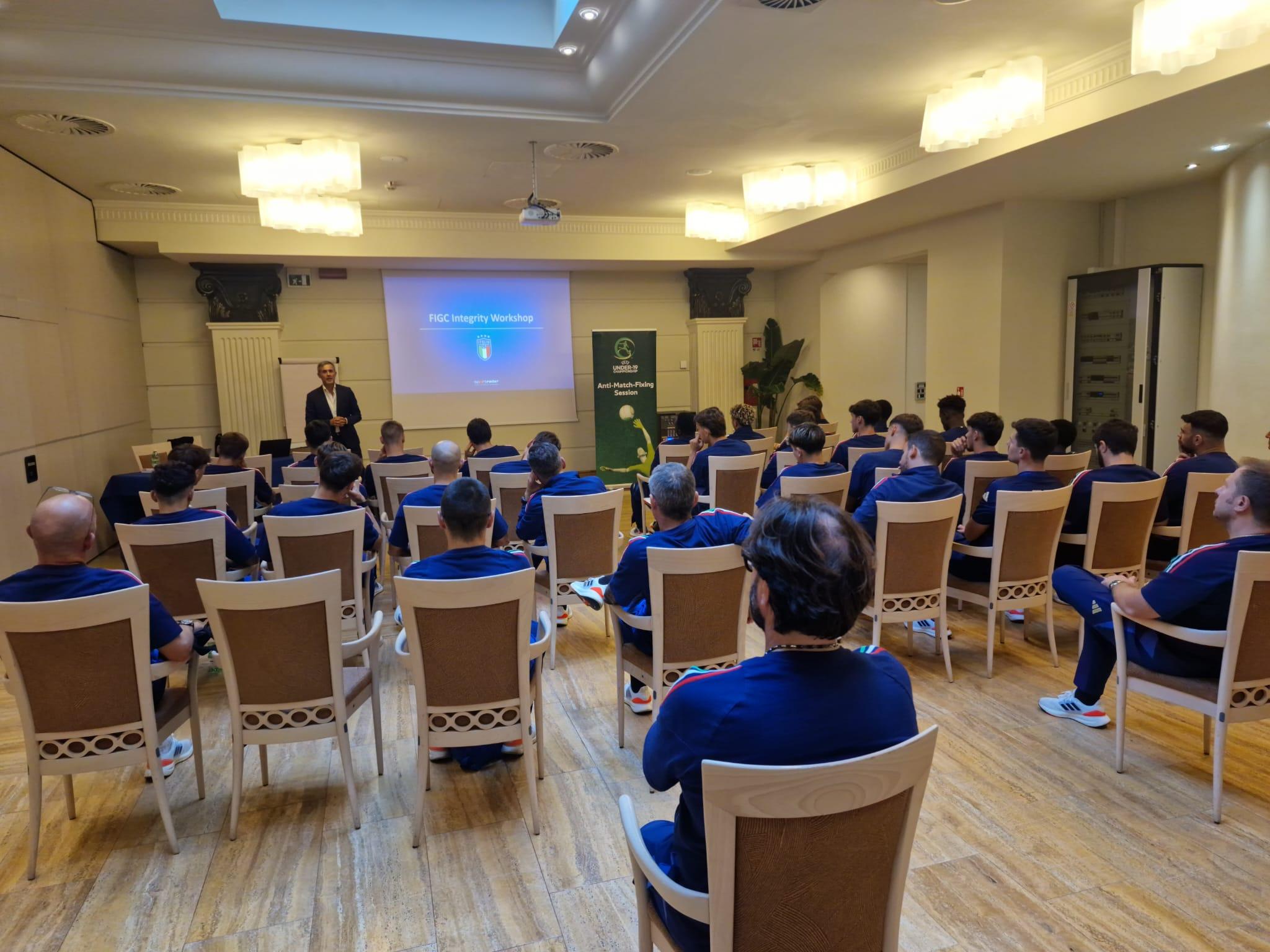 All'indomani del pareggio per 3-3 contro il Galles a Ravenna, nella prima delle due amichevoli in programma, la Nazionale Under 19 del tecnico Alberto Bollini ha partecipato al workshop sugli aspetti legati all'integrità delle competizioni e al contrasto al match fixing, che rientra nell'ambito delle attività promosse dalla FIGC, in collaborazione con Sportradar, che fa parte del percorso di formazione obbligatoria per le Nazionali Giovanili, impegnate nelle competizioni UEFA.