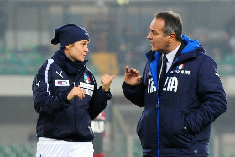 Nella foto l’attaccante del Brescia Girelli con il tecnico Cabrini