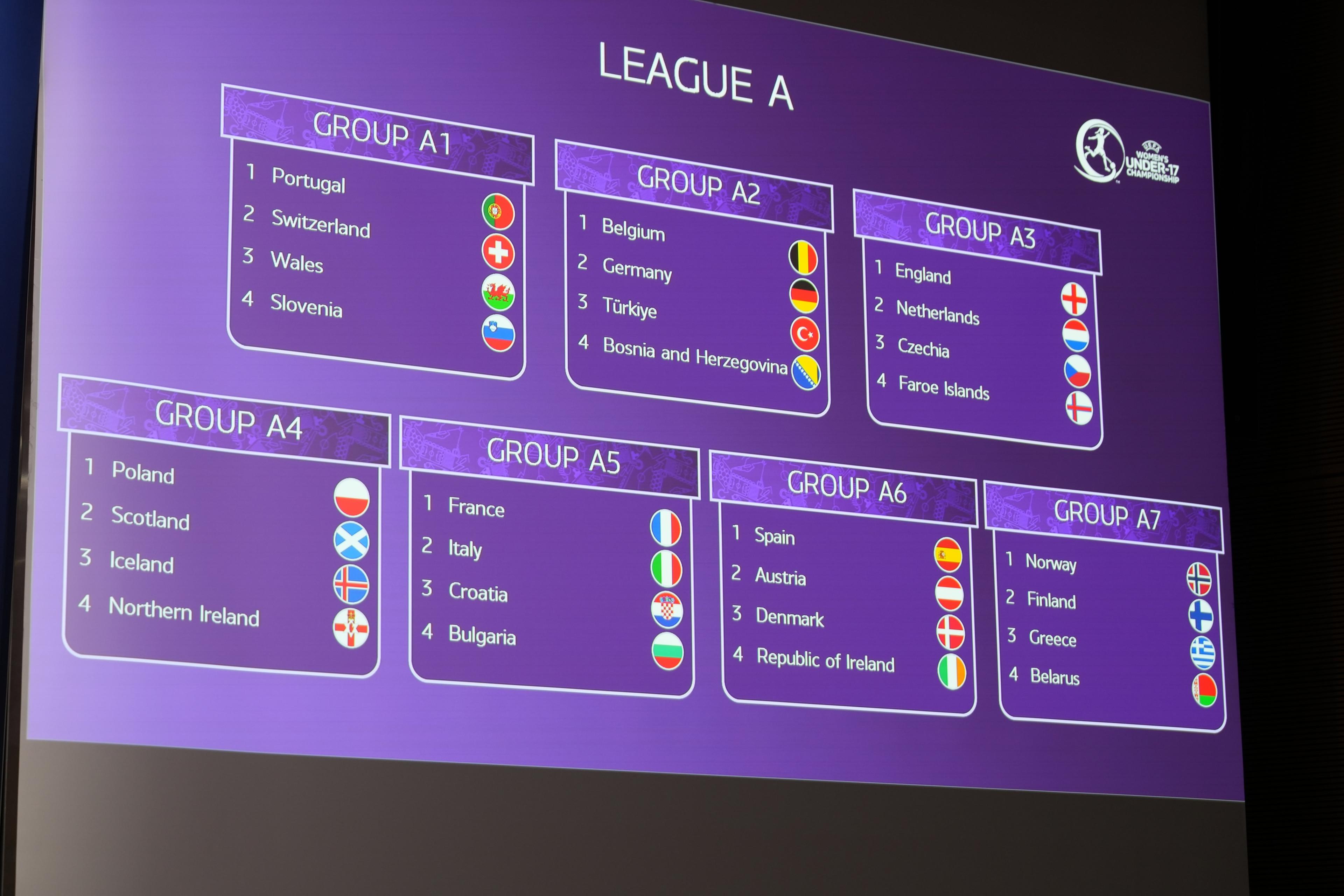 La Lega A è composta da 28 squadre, compresa la Spagna campione in carica e le sette promosse dalla Lega B dopo il secondo turno 2023/24 in primavera.