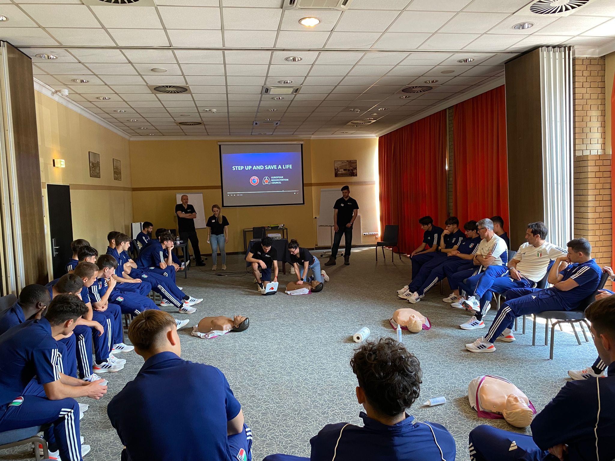 Nel primo pomeriggio, gli Azzurrini, insieme allo staff, hanno partecipato al corso RCP (rianimazione cardiopolmonare) organizzato dalla UEFA.