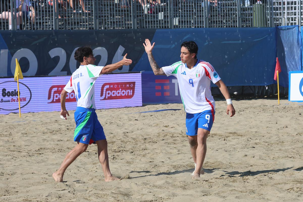 La prima storica edizione dell’Europeo Under 20 di beach soccer si chiude con gli Azzurrini sul podio. È questa la fotografia che regala il Beach Stadium Matteo Valenti di Viareggio, con la Nazionale di Del Duca che, dopo aver perso la semifinale con il Portogallo, stende 8-2 la Cechia nella finale per il 3° posto, salendo così sul podio e chiudendo con un sorriso. Contro i cechi l’Italia non fatica, volando avanti 5-0 già nel primo tempo e continuando a dilagare nelle restanti due frazioni. Viareggio applaude l’Italbeach, con la città versiliana che tornerà protagonista il prossimo settembre quando al ‘Valenti’ si respirerà aria di calcio sulla sabbia con le EBSL Superfinal e gli Azzurri che si presenteranno da campioni d’Europa in carica.