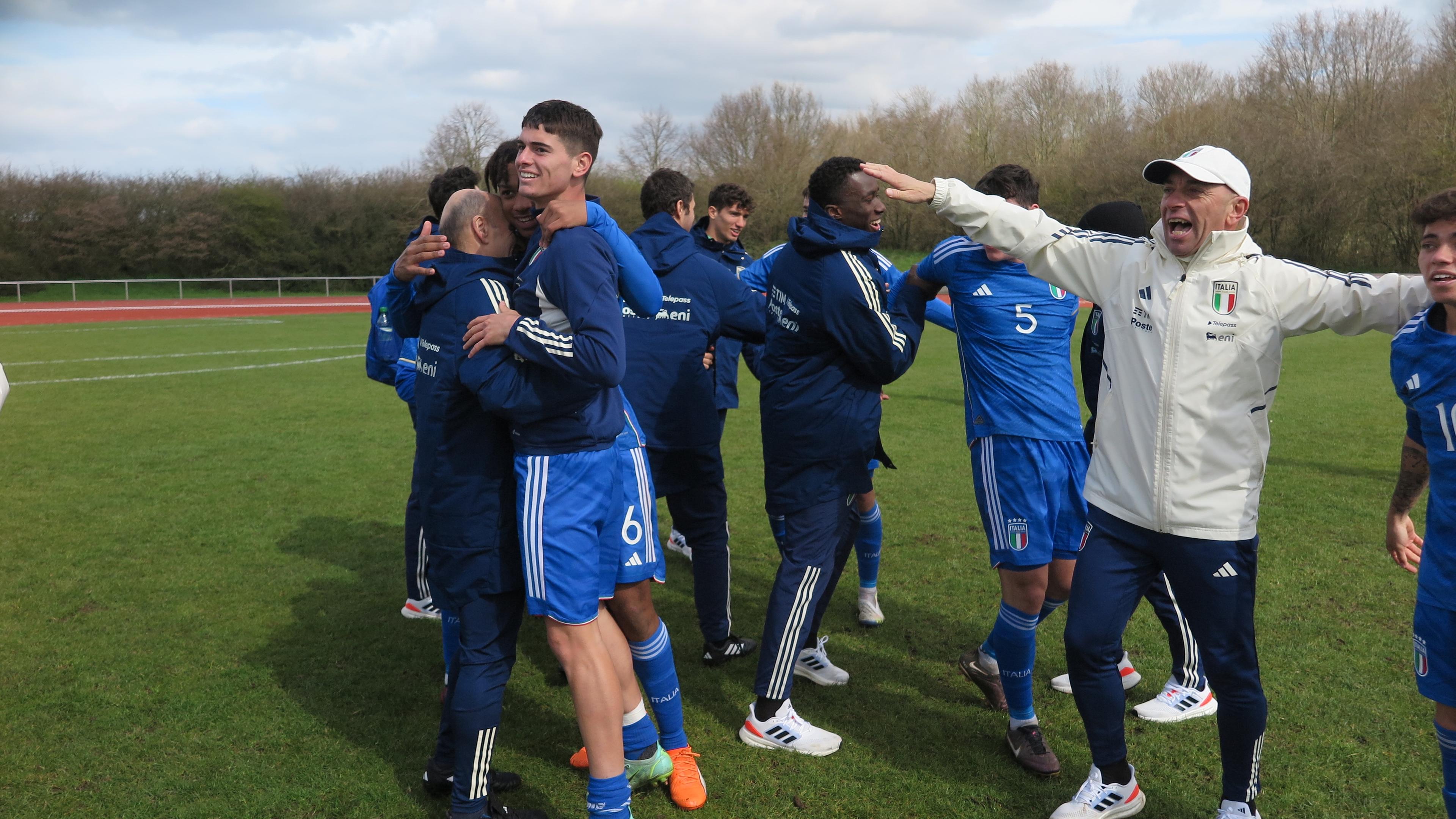 Missione compiuta a Brema, l’Italia vola a Malta. All’Obervieland Stadion, l’Italia pareggia 2-2 contro il Belgio, conquista la prima piazza del gruppo 2 e stacca il pass per Malta (3-16 luglio). L’altra partita del girone si conclude con la vittoria della Germania contro la Slovenia (3-0) e agli Azzurrini è sufficiente il pareggio per garantirsi il passaggio del turno. Una battaglia, combattuta con coraggio e sagacia tecnica, iniziata con lo svantaggio siglato da Bassette all’8’. Una doccia fredda da cui gli Azzurrini si riprendono immediatamente, pareggiando prima con D’Andrea su calcio di rigore e passando in vantaggio, sempre dagli 11 metri, con Esposito. Il pareggio del Belgio arriva dal dischetto all’85’ e, nonostante i 5’ di recupero concessi dall’arbitro turco Karaoglan, gli Azzurrini reggono l’urto e portano casa la qualificazione. Partita da incorniciare per Koleosho, in campo dal primo minuto e poi sostituito perché claudicante: nonostante le sue precarie condizioni, è stata la vera spina nel fianco per il Belgio.