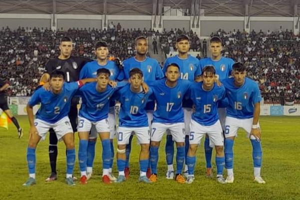 L'Italia è partita forte: Lantaki, dopo pochi minuti, ha anticipato Raimondo che si stava preparando per calciare a rete, poi al 6' è stato Ignacchiti a calciare alto di sinistro. Altra occasione per Raimondo poco dopo: Accornero ha preso il tempo in velocità ad Ammal e ha servito un pallone in mezzo al centravanti azzurro, che però ha esitato troppo al momento di calciare favorendo la parata di Mago. Dall'altra parte, si è fatto notare anche il portiere azzurro Mastrantonio, in uscita su Baallal e, al 39', con un colpo di reni sul colpo di testa di Sadik.