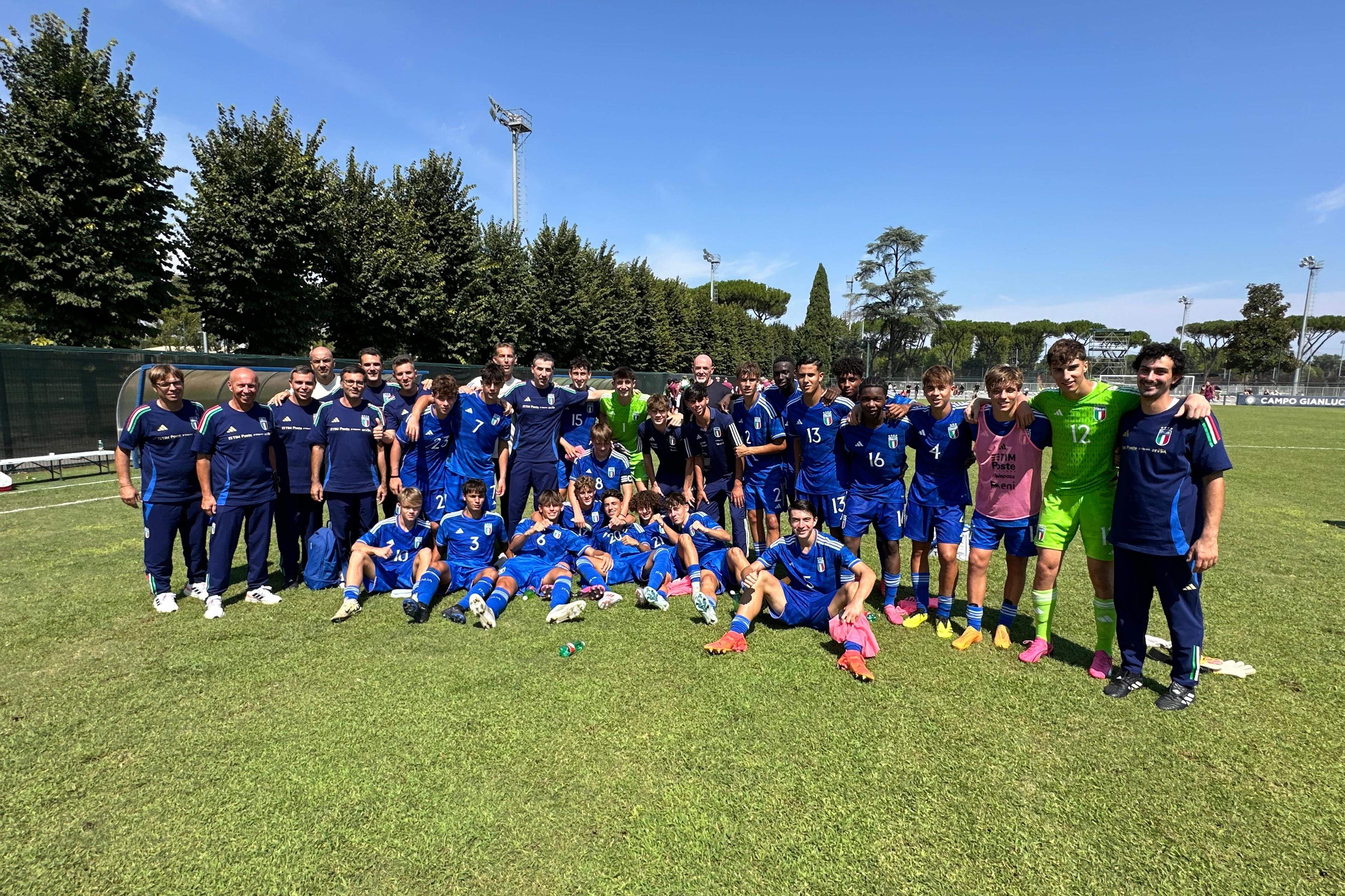 Straordinaria prestazione della Nazionale Under 16, che trionfa con un netto 5-0 contro l'Inghilterra sul campo 3 del Centro di Preparazione Olimpica Acqua Acetosa 'Giulio Onesti' di Roma, intitolato alla memoria di 'Gianluca Vialli'. A impreziosire la giornata degli Azzurrini, la presenza sugli spalti del Segretario Generale della FIGC, Marco Brunelli, che ha voluto complimentarsi con la squadra e lo staff per aver ottenuto un risultato tanto prestigioso quanto storico, poiché nessuna selezione di calcio maschile azzurra aveva mai vinto così largamente contro i pari categoria inglesi. I ragazzi di Marco Scarpa passano in vantaggio al 18' con il capitano Gioele Giammattei, centrocampista della Roma, per poi raddoppiare al 26' con lo juventino Riccardo Paonessa. Sia il numero 18 che il numero 23 azzurro firmano rispettivamente al 32' e al 36' la doppietta, prima che l'attaccante del Bologna, Kevin Fustini, sancisca il risultato finale al 72'.