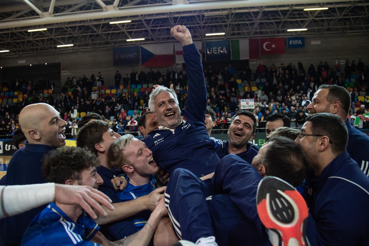 Sotto gli occhi del presidente del Settore Giovanile e Scolastico della FIGC Vito Tisci e del presidente della Divisione Calcio a 5 Luca Bergamini, la Nazionale italiana di futsal U19, in un PalaErcole sold out per il terzo giorno di gara su tre, batte 4-2 la Turchia e si qualifica alla fase finale dell’Europeo di categoria.
