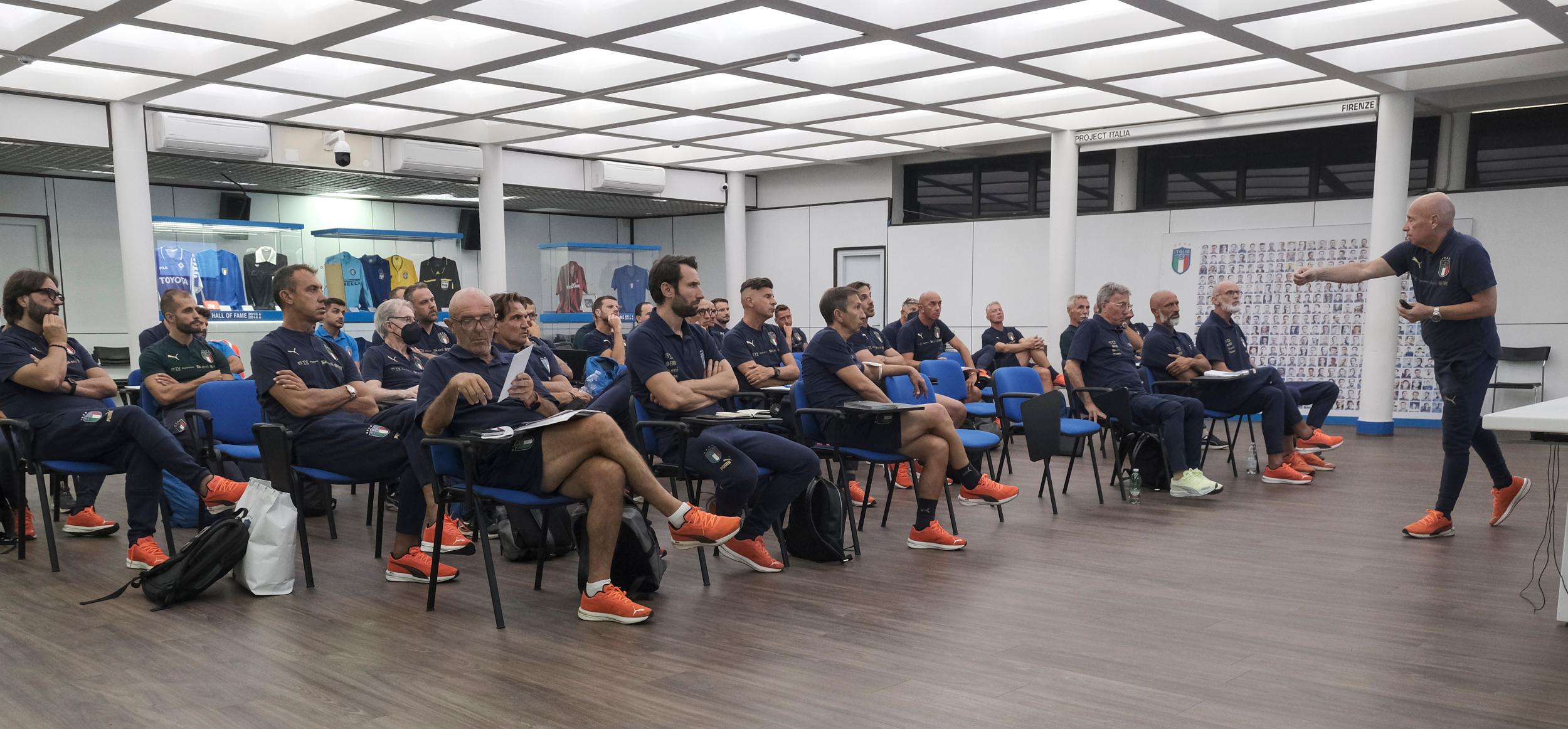 Un’occasione di confronto per discutere di quelli che saranno i prossimi impegni, per analizzare quanto fatto nella passata stagione e anche per esaminare alcune questioni tecnico-tattiche; gli staff azzurri hanno seguito le spiegazioni di Viscidi nella sala conferenze del Museo del Calcio, con nuovi spunti per arricchire e sviluppare quello che è il percorso intrapreso dal Club Italia.