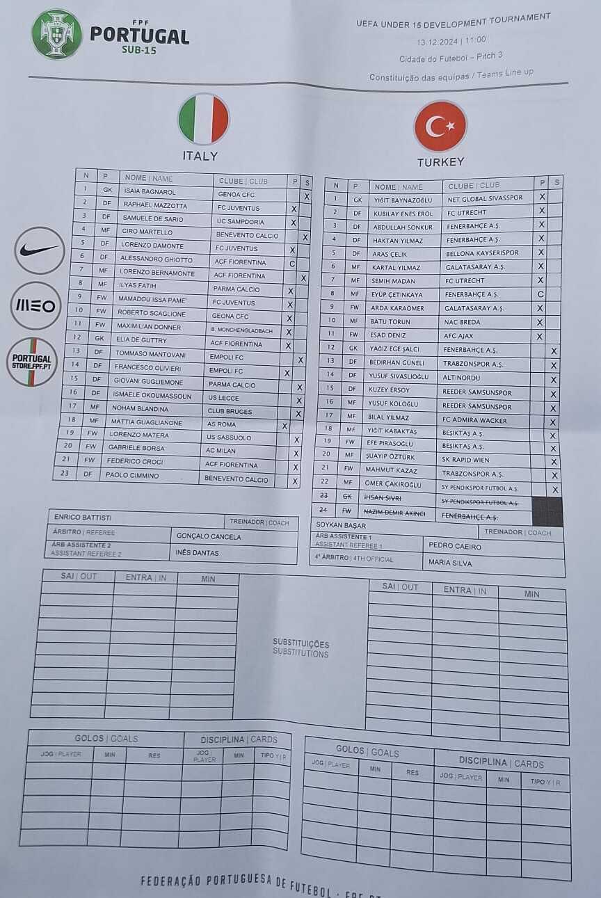 Parte con il piede giusto il cammino della Nazionale Under 15, che si impone con un netto 6-2 sulla Turchia alla Cidade do Futebol di Algés nella partita d'esordio del Torneo di Sviluppo UEFA, in programma dal 13 al 18 dicembre in Portogallo.
