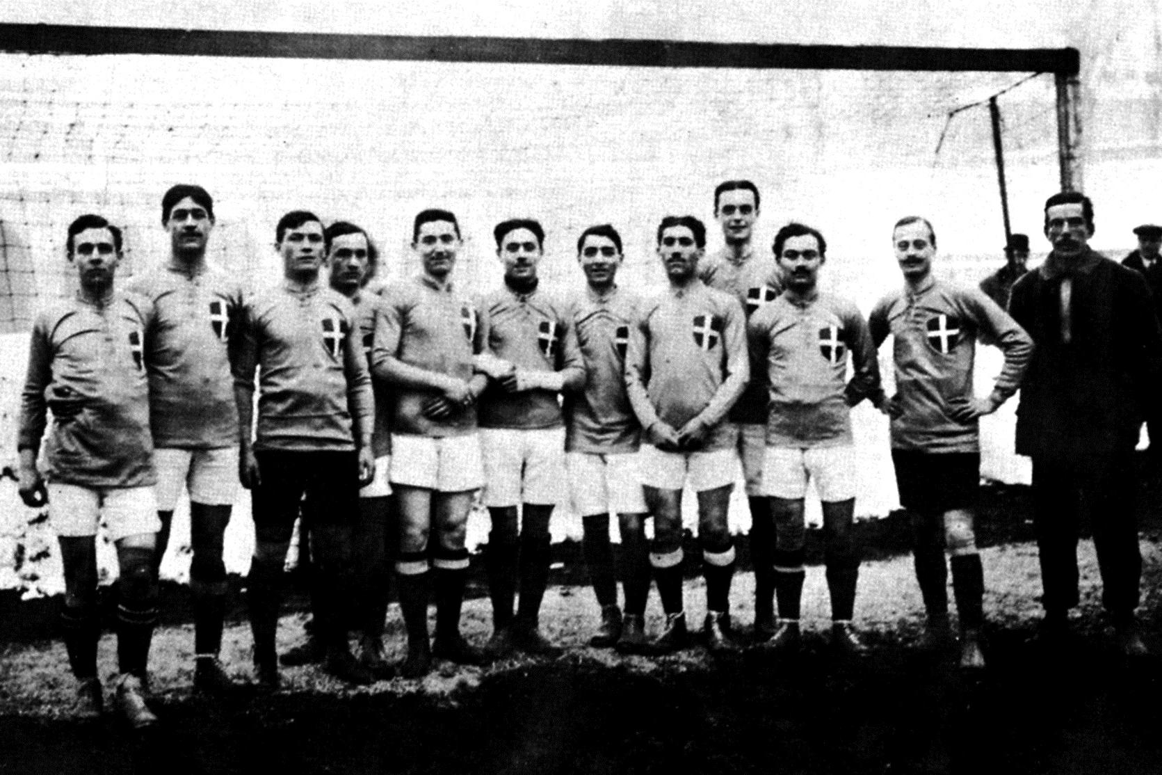 La maglia azzurra fece il suo debutto il 6 gennaio 1911 all'Arena Civica di Milano in occasione del match con l'Ungheria, terza partita della storia della Nazionale otto mesi dopo il battesimo ufficiale avvenuto il 15 maggio 1910, quando l'Italia scese in campo vestita di bianco battendo con un perentorio 6-2 la Francia. In una Milano imbiancata dalla neve e davanti a 5.000 spettatori l'Ungheria si impone 1-0, la Nazionale non riuscì a riscattare la severa sconfitta (6-1) subita otto mesi prima a Budapest, ma dimostrò di aver compiuto importanti passi in avanti alla sua prima uscita in azzurro, scelto in quanto colore di Casa Savoia, la dinastia regnante in Italia dal 1861 al 1946.