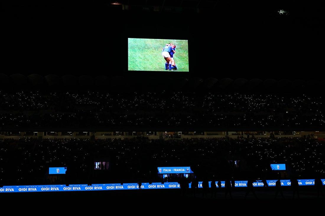 L’applauso degli oltre 68.000 del ‘Mezza’ per celebrare le gesta senza tempo di Gigi Riva, il campionissimo azzurro che lo scorso 7 novembre avrebbe compiuto 80 anni. Prima del calcio d’inizio della sfida di Nations League tra Italia e Francia, la FIGC ha voluto omaggiare il miglior marcatore della storia della Nazionale (35 reti in 42 presenze), proiettando sul maxischermo le immagini in bianco e nero di alcuni dei suoi gol più iconici, accompagnate sul campo da un gioco di luci e animazioni 3D che hanno reso il ricordo ancora più speciale.