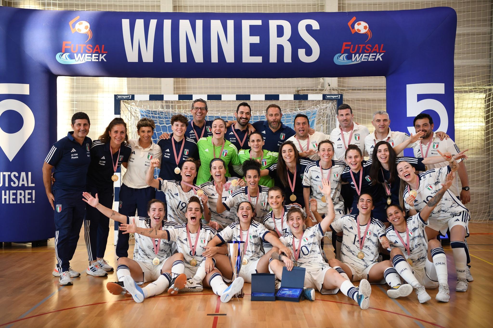 Slovacchia. L’Italia si radunerà sabato 7 settembre al CPO Giulio Onesti di Roma, dove resterà per preparare le due amichevoli fino alla mattinata di lunedì, quando è previsto il trasferimento in Slovacchia. Le due partite si giocheranno presso l’X Bionic-Sphere, il centro olimpico di Samorin, cittadina a pochi chilometri dalla capitale Bratislava. Con le slovacche due precedenti: il primo nel 2020 quando le Azzurre si imposero 6-0 in amichevole a Nijmegen (tripletta di Sara Boutimah); il secondo l’anno successivo in Svezia nel girone di qualificazione alla fase finale dell’Europeo 2022, con l’Italia che vinse con un netto 12-1. Per le gare della prossima settimana Francesca Salvatore ha confermato in gran parte il blocco delle calciatrici utilizzate in occasione dell’ultima uscita dello scorso giugno (la vittoriosa Futsal Week di Porec, in foto), convocando 17 calciatrici.
