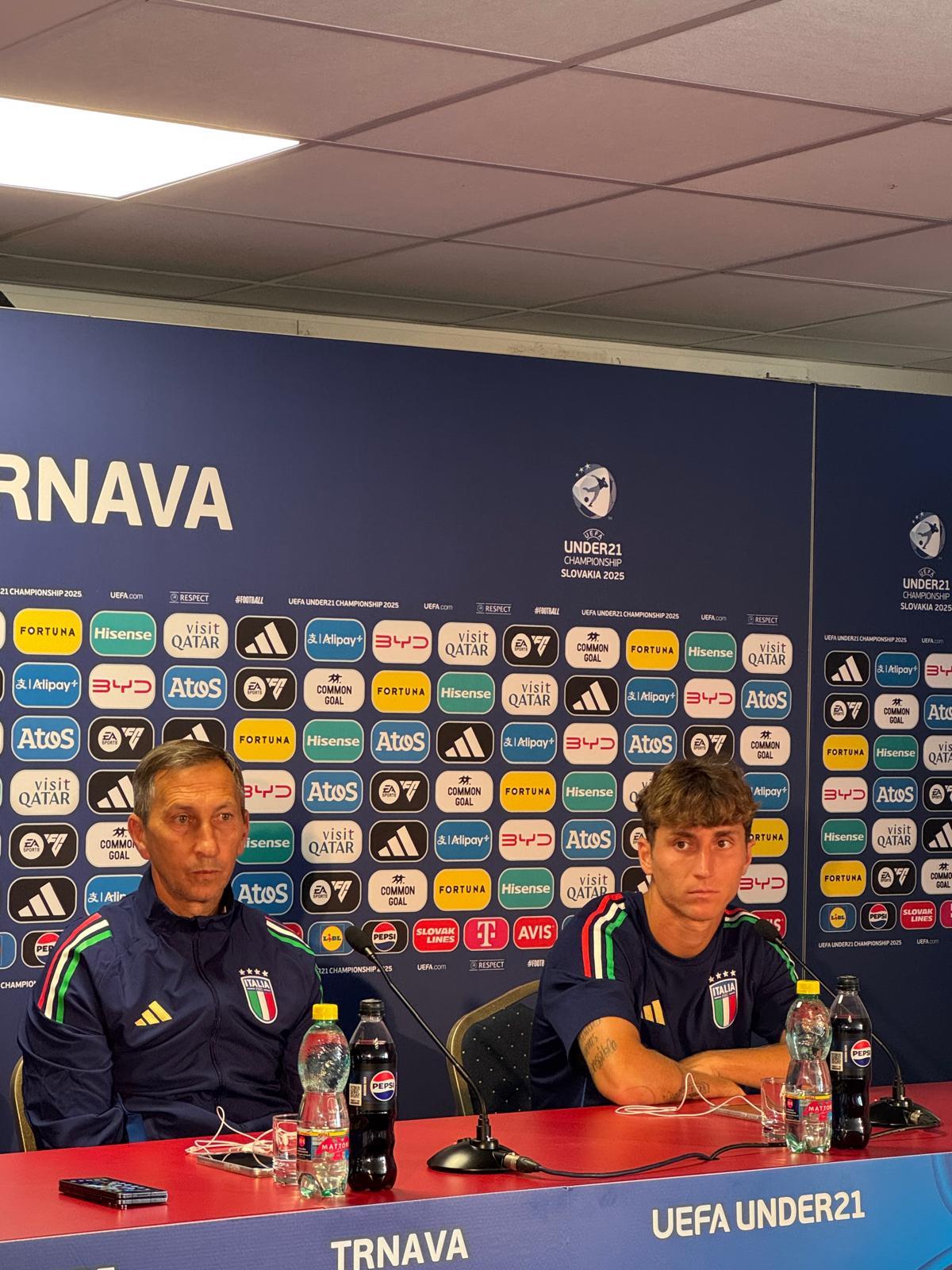 IL RINGRAZIAMENTO A SPALLETTI. Inevitabile che il discorso vada a quanto accaduto in Nazionale maggiore dopo la sconfitta con la Norvegia: "Mi dispiace molto per mister Spalletti, che è una persona vera, con dei valori umani importanti e con cui in questi due anni ho avuto un ottimo rapporto, di rispetto e fiducia. Per questo lo ringrazio. C’era grande sinergia tra la Nazionale A, l’Under 21 e le altre Nazionali giovanili". Spalletti ha dichiarato di aver trovato una squadra con molti giocatori arrivati stanchi in ritiro dopo una stagione lunga e logorante: "Per quanto riguarda la condizione fisica io sono stato più fortunato, visto che ho avuto dodici giorni con i ragazzi e abbiamo potuto fare lavoro differenziato per chi ha giocato di più e per chi andava invece rimesso in condizione. In Nazionale A si sono ritrovati solo tre giorni prima di giocare e quindi è stato un po’ diverso. Anche se penso che alla fine, più che l’aspetto fisico, la differenza la faccia la testa, le motivazioni che un giocatore ha nel vestire la maglia della Nazionale". In attesa di valutare le condizioni di Fazzini ("ha un piccolo problemino, vedremo dopo la rifinitura se per domani ce la farà") la certezza è che Nunziata non potrà contare per questo Europeo su Francesco Pio Esposito, il miglior marcatore del biennio con sette reti: "Per noi era un giocatore diverso da tutti quelli che abbiamo in rosa, un attaccante centrale che ci faceva da punto di riferimento. Dovremo adeguarci alla sua assenza e fare altre cose con altri giocatori, questo sarà un mio compito. Mi piace però parlare più dei ragazzi presenti che di quelli che non ci sono". Si aggregheranno in giornata al gruppo Diego Coppola e Cesare Casadei, entrambi reduci dagli impegni con la Nazionale maggiore. Il difensore del Verona ha esordito dal primo minuto a Oslo con la Norvegia per poi giocare uno spezzone di gara anche ieri con la Moldova: "Valuteremo questa sera se è il caso di farli giocare o no".