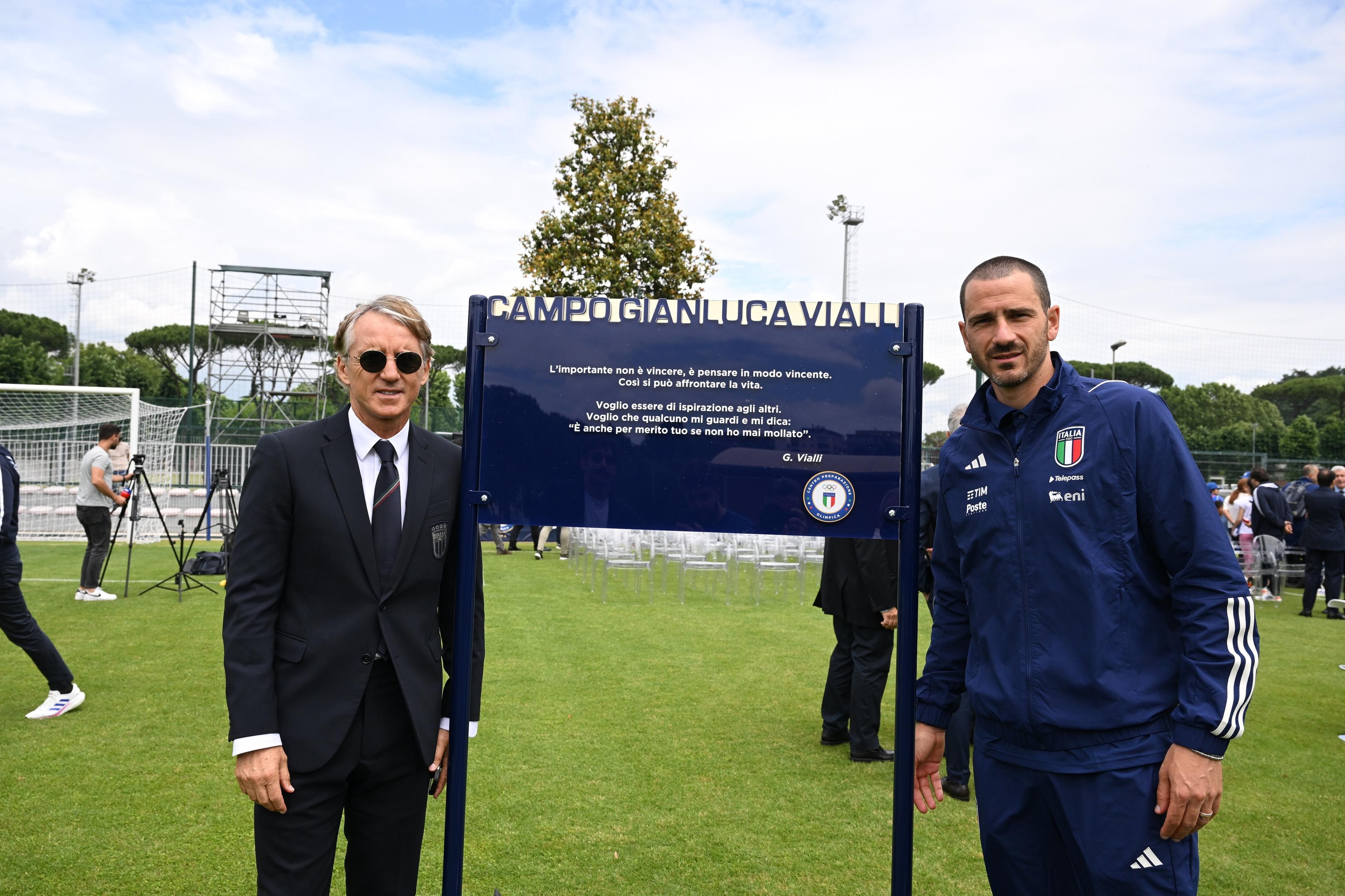 Alla cerimonia di intitolazione sono intervenuti il presidente del CONI Giovanni Malagò, il presidente della FIGC Gabriele Gravina, il vicepresidente del CONI Silvia Salis, il presidente del CIP Luca Pancalli, i segretari generali di CONI e FIGC, Carlo Mornati e Marco Brunelli, gli ex presidenti federali Franco Carraro e Giancarlo Abete, oltre ovviamente al Ct Roberto Mancini e agli Azzurri, che hanno svolto sul campo una seduta di allenamento prima della partenza nel pomeriggio per il ‘Forte Village Resort’ di S. Margherita di Pula (Cagliari). Spettatori d’eccezione anche una trentina di giovani pazienti dell’Ospedale Pediatrico ‘Bambino Gesù’, con il quale la FIGC, e la Nazionale in particolare, hanno promosso negli ultimi anni una serie di iniziative congiunte.