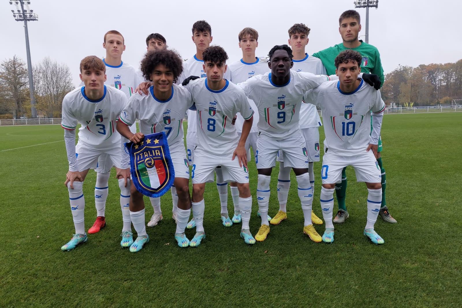 Franceschini, per la seconda partita, ha cambiato interamente l'undici di partenza, affidandosi a Di Bartolo tra i pali, Bakoune, D'Avino, Comuzzo e Turco in difesa, Bovo, Oliva e Quieto a centrocampo con Ciammaglichella in appoggio a Owusu e Anghelé. Nella Francia, in campo Eliaz Zidane, figlio dell'ex stella tra le altre di Juventus e Real Madrid. A firmare il vantaggio dei padroni di casa è stato Sael Kumbedi Nseke, difensore del Lione, a segno anche nella prima amichevole. Nella ripresa, invece, sono arrivati il secondo e il terzo gol rispettivamente di Noah Edjouma (Tolosa) al 52' e di Mamadou Sarr (Lione) al 74', con i due allenatori - Bernard Diomede e Daniele Franceschini - che hanno effettuato complessivamente 16 cambi, sette per la Francia e nove per l'Italia.