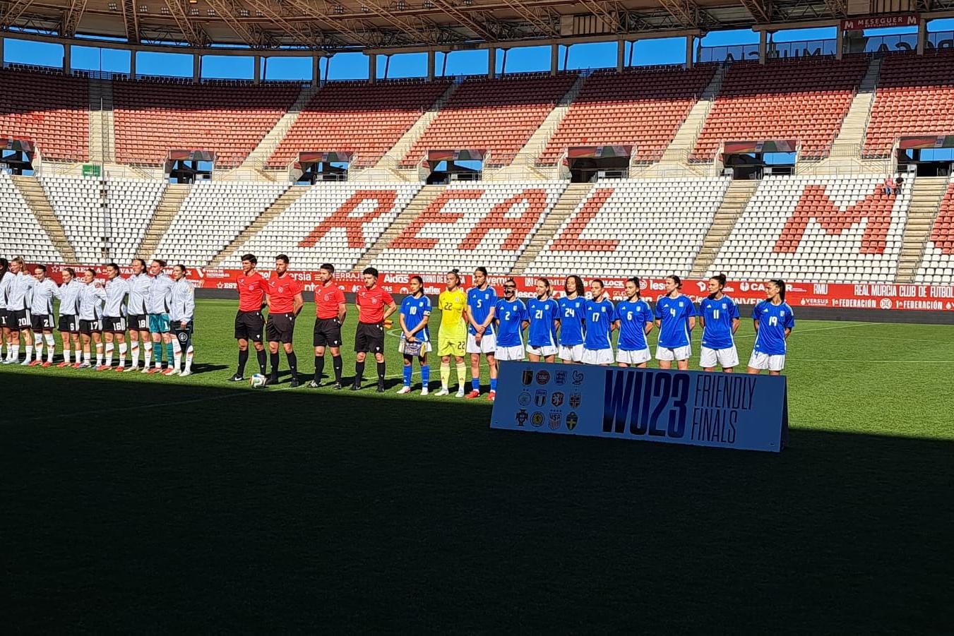 Dopo la vittoria di domenica scorsa contro il Portogallo, la Nazionale Under 23 Femminile è stata sconfitta 1-0 dalla Germania nella seconda partita valida per la ‘Settimana delle Amichevoli’ disputata in Spagna. A Murcia, non è bastata una buona prestazione alle ragazze di Tatiana Zorri per bissare il risultato di quattro giorni fa. Decisivo, al 7’, un gol di Luca Birkholz, servita perfettamente da Katharina Piljic: la giocatrice del Friburgo ha saltato anche Beretta in uscita e messo il pallone in rete.