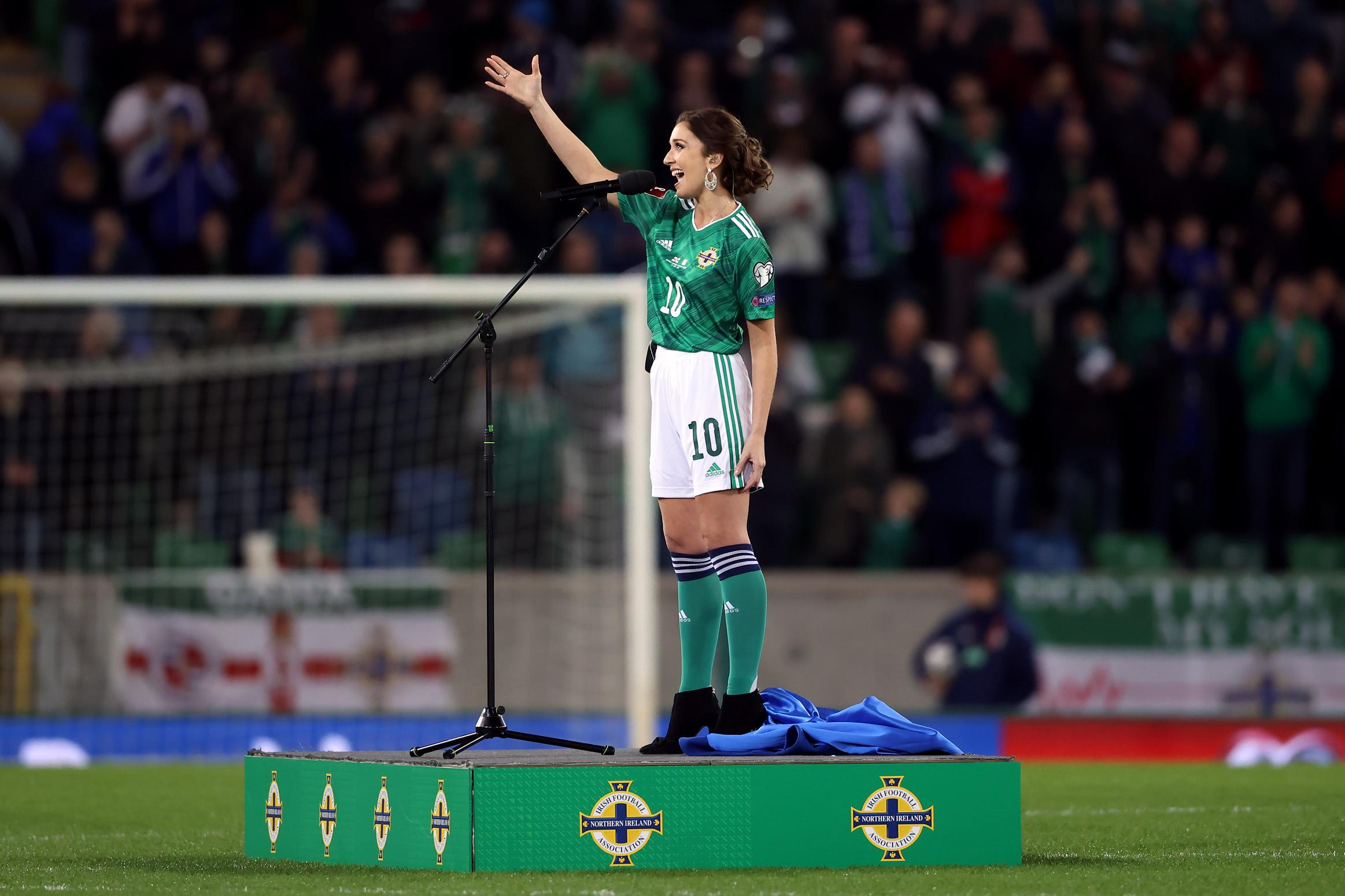 Carly Paoli, cresciuta dividendosi tra Lecce e il Wiltshire (Inghilterra), si era già esibita davanti agli Azzurri in occasione di Irlanda del Nord-Italia, gara giocata a Belfast nel novembre scorso.
