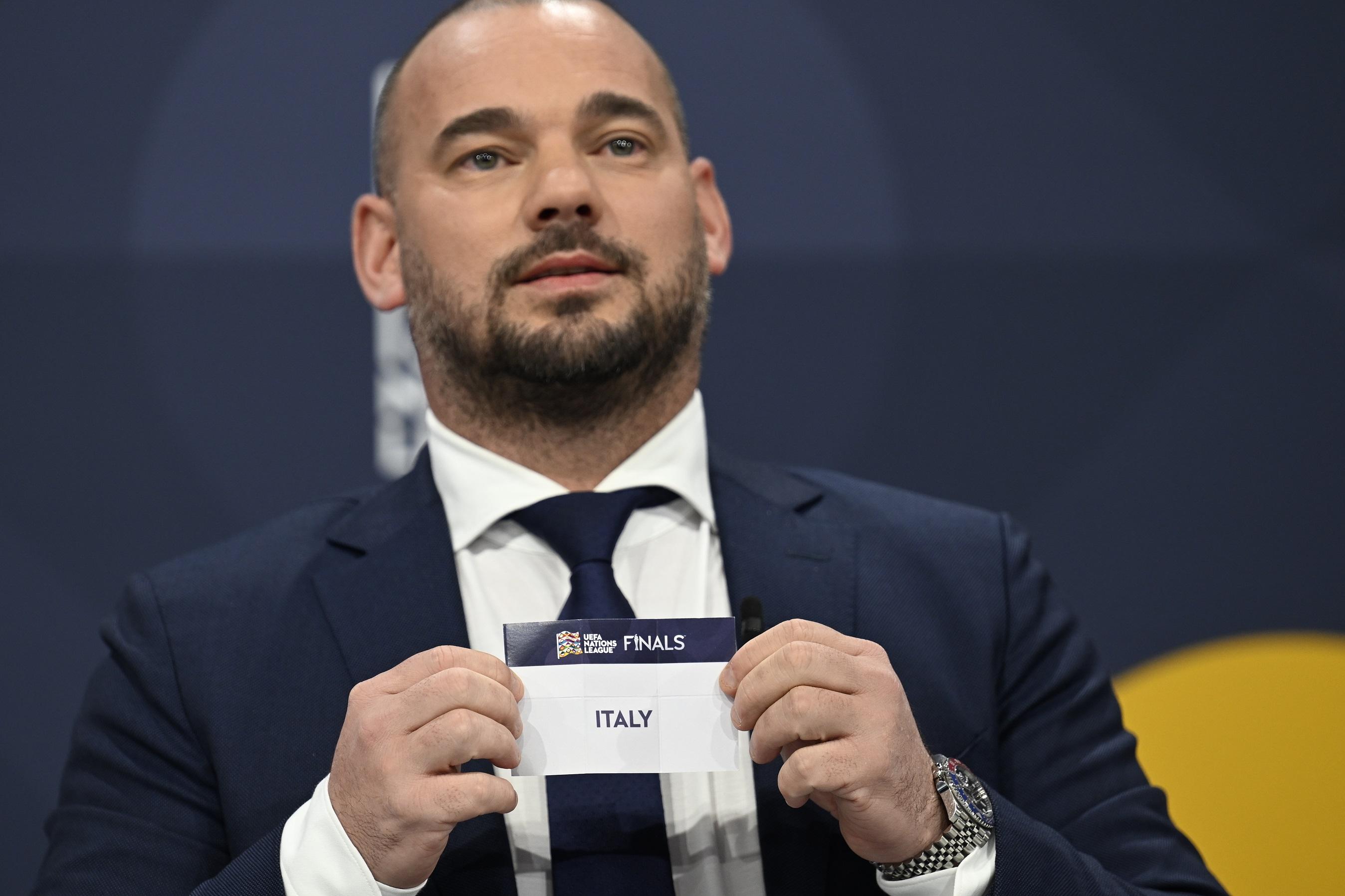 È questo l’esito del sorteggio che si è tenuto questa mattina a Nyon alla presenza del presidente della FIGC Gabriele Gravina e di Alberico Evani, assistente tecnico del Ct Roberto Mancini. Ad estrarre le palline dall’urna una vecchia conoscenza del campionato italiano, Wesley Sneijder, vincitore del Triplete con l’Inter nel 2010. È stato il primatista di presenze (134) con la nazionale olandese ad abbinare Italia e Spagna, già opposte il 6 ottobre 2021 nella semifinale della seconda edizione della Nations League. Allo stadio ‘Meazza’ di Milano le Furie Rosse si imposero 2-1 (doppietta di Ferran Torres e gol di Pellegrini), mettendo fine alla striscia di 37 risultati utili consecutivi degli Azzurri. Sono 39 i precedenti con la Spagna (11 vittorie dell’Italia, 16 pareggi e 12 sconfitte), con il fresco ricordo anche del successo ai rigori nella semifinale di EURO 2020.