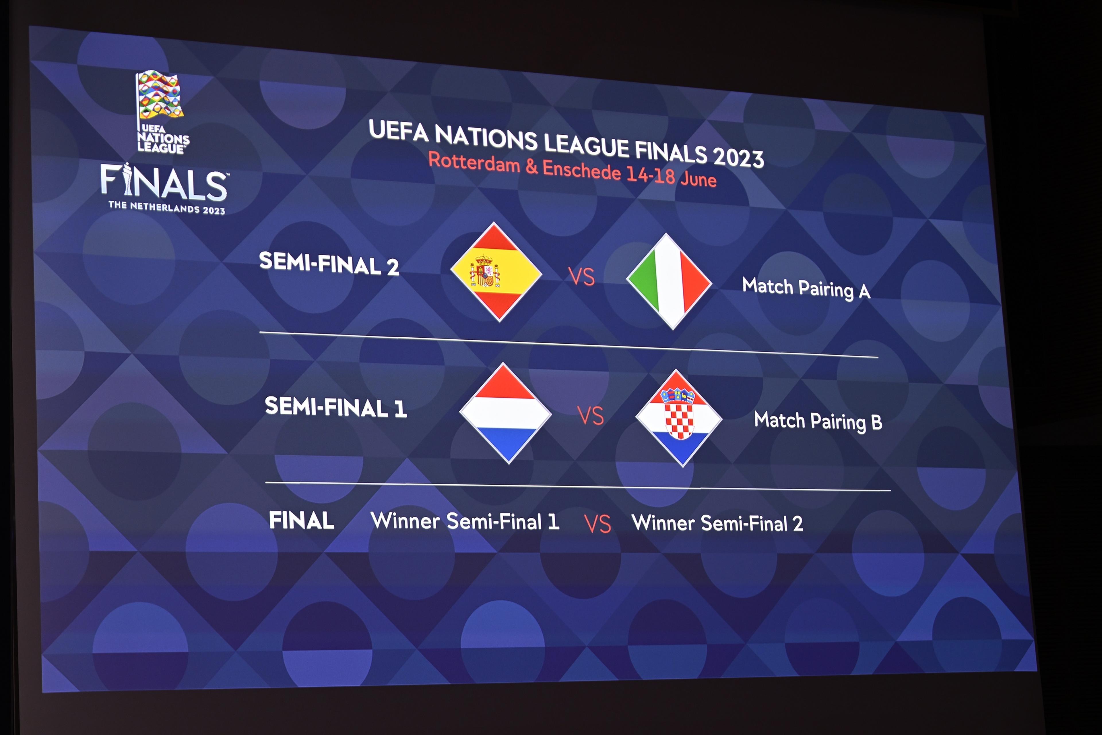 Sarà la Spagna l’avversaria dell’Italia nella semifinale della UEFA Nations League. Il match si giocherà giovedì 15 giugno (ore 20.45) a Enschede, mentre l’altra semifinale tra Paesi Bassi e Croazia andrà in scena il giorno prima a Rotterdam. La 'finalina' per il terzo posto e la finale sono in programma domenica 18 giugno rispettivamente a Enschede (ore 15) e Rotterdam (ore 20.45).
