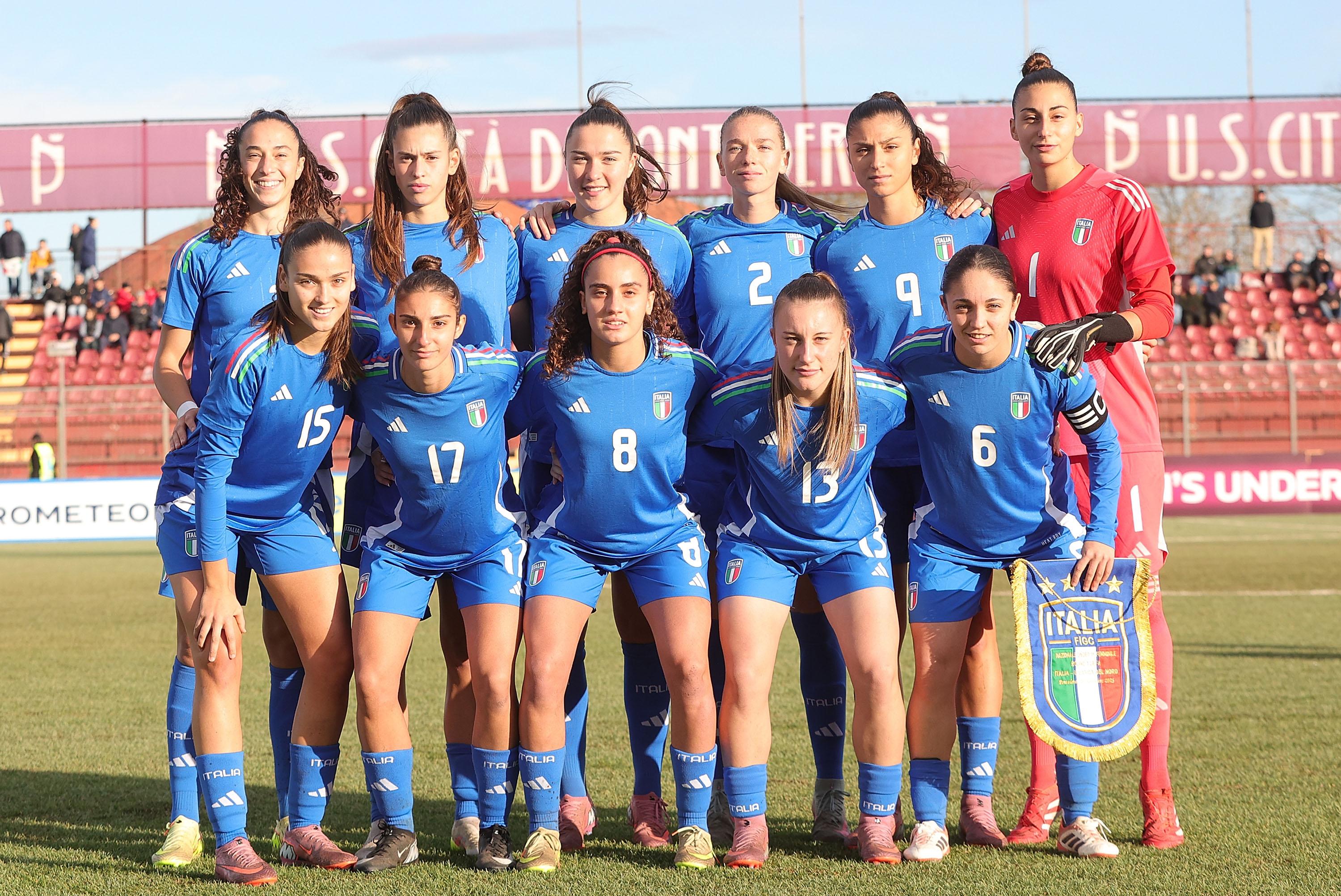 ITALIA: Mazzocchi; Consolini, Bertora (1’st Venturelli), Verrini, Tosello (17’st Bertero); Langella, Cherubini (30’st Robino); Ferraresi (9’st Bedini), Ventriglia, Vitale; Galli (17’st Taddei). A disp.: Bucci, Lombardi, Bonanomi, Zanoni. All.: Matteucci