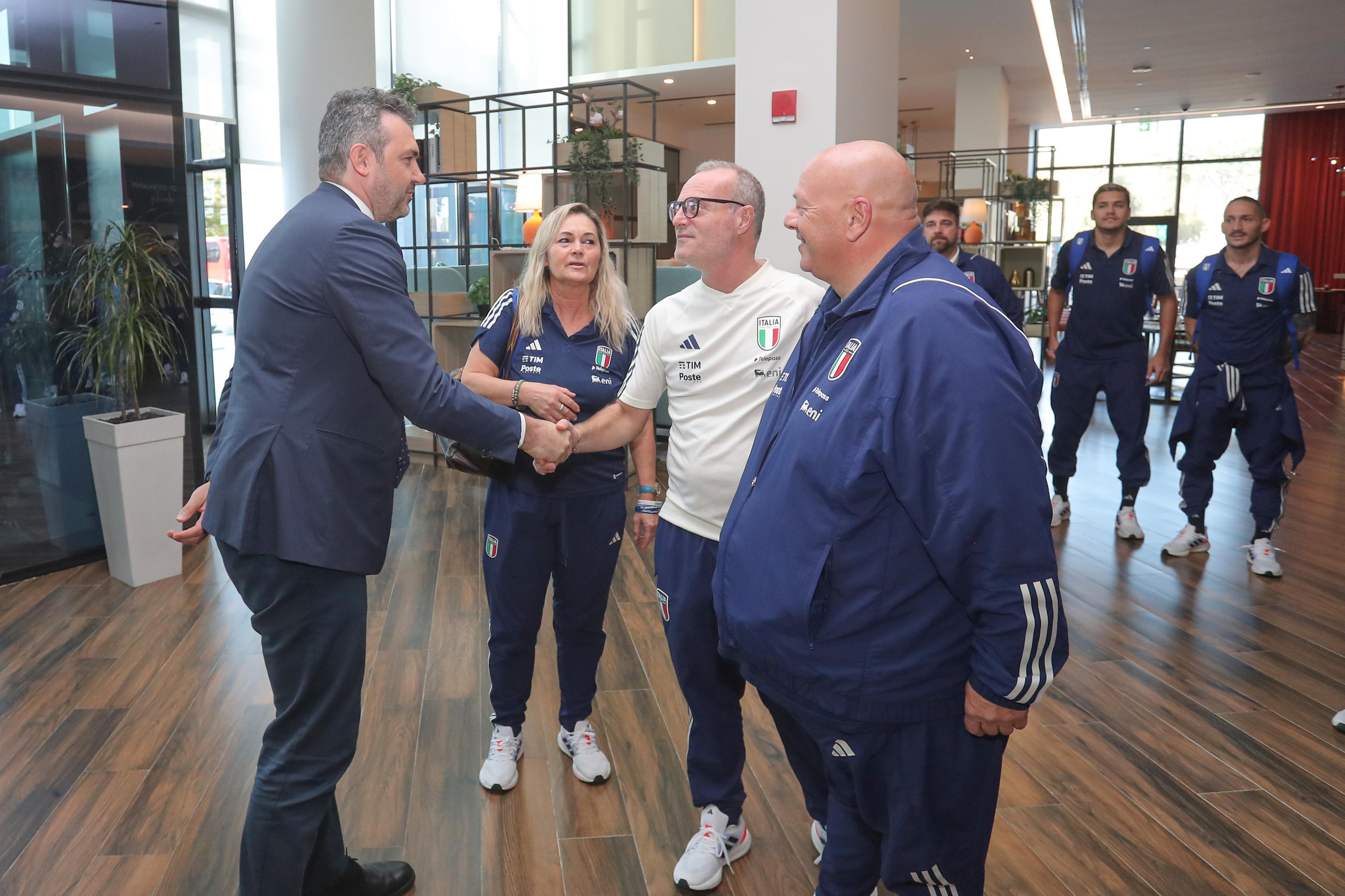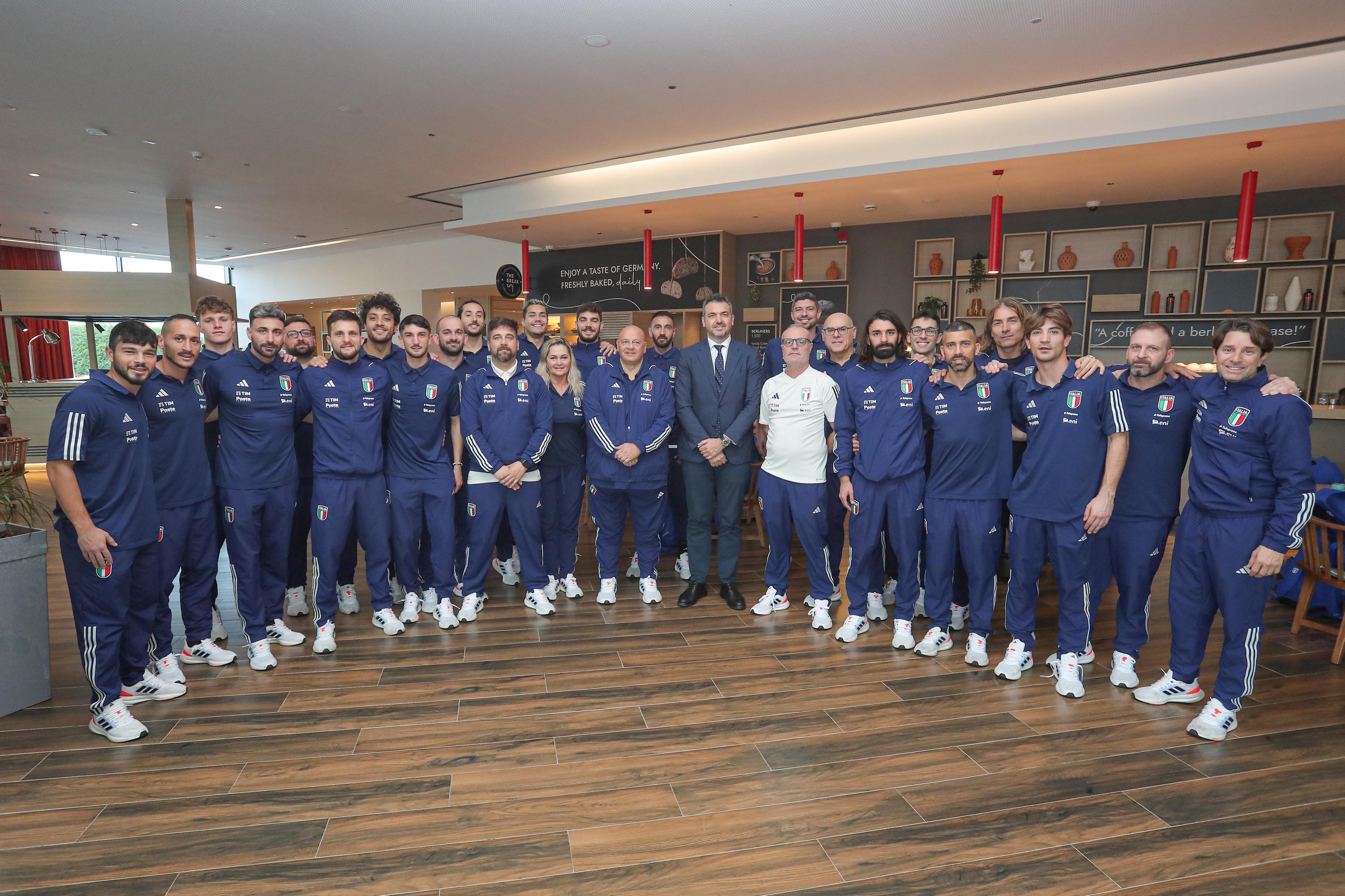 L'incontro. L’Italia, che affronterà una prima parte della preparazione in Oman, è arrivata nella capitale Muscat nella giornata di ieri. Zurlo e compagni giocheranno tre partite amichevoli: la prima domani contro l’Arabia Saudita (ore 14), le altre il 2 e il 3 febbraio contro i padroni di casa (ore 14 e 15.30). Quest’oggi, invece, la delegazione azzurra ha incontrato presso l’hotel Intercity di Muscat Pierluigi D’Elia l’ambasciatore italiano in Oman: "Un benvenuto alla Nazionale di beach soccer, in visita per la preparazione in vista del campionato mondiale negli Emirati - ha dichiarato l'ambasciatore -. L’occasione è utile per rinsaldare l’amicizia tra Italia e Oman, che sono sicuro ospiterà al meglio i nostri Azzurri. La presenza della Nazionale inoltre rafforza le iniziative di diplomazia sportiva che portiamo avanti per rafforzare la cooperazione italo-omanita". Chiuso il ciclo di amichevoli in Oman, il 4 febbraio la Nazionale si sposterà a Dubai, sede del Mondiale. Proprio in quella giornata sarà ufficializzata alla FIFA la lista dei calciatori che prenderanno parte alla Coppa del Mondo: i tre test di Muscat serviranno perciò a Del Duca per effettuare le ultime scelte, dovendo scremare il gruppo dai 16 attualmente presenti in Oman ai 12 ufficiali di Dubai.