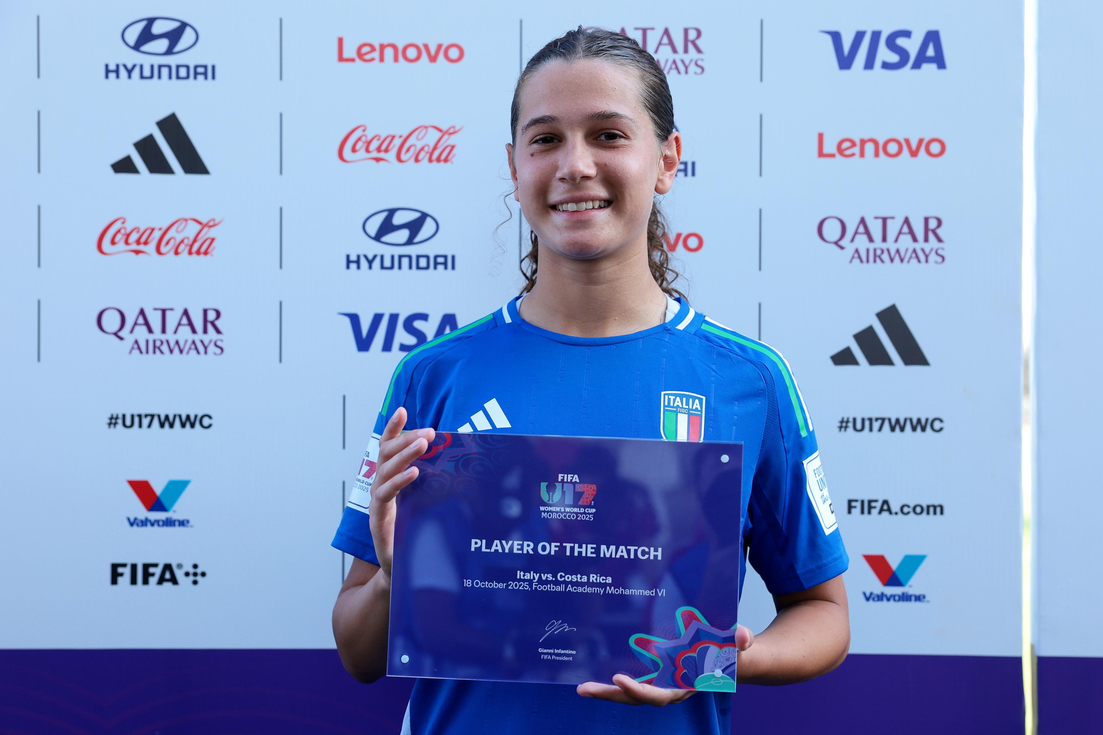 A fine sfida, nella mixed zone con la stampa internazionale presente, Anna Copelli sorride e mostra orgogliosa quella targa secondo cui è stata lei, per i giudizi della FIFA, la miglior giocatrice del confronto: “Sono molto felice – sottolinea Copelli, autrice di una rete e due splendidi assist per Galli in questo caldo pomeriggio di Rabat – per essere tornata a segnare. È stata una partita impegnativa, ma abbiamo giocato bene, di squadra, unite; abbiamo lottato. Certo, questo però deve essere solo un punto di partenza. Giocare un Mondiale? È il sogno di ogni bambina che insegue un pallone, sperando di onorare questa maglia che indossiamo”.
