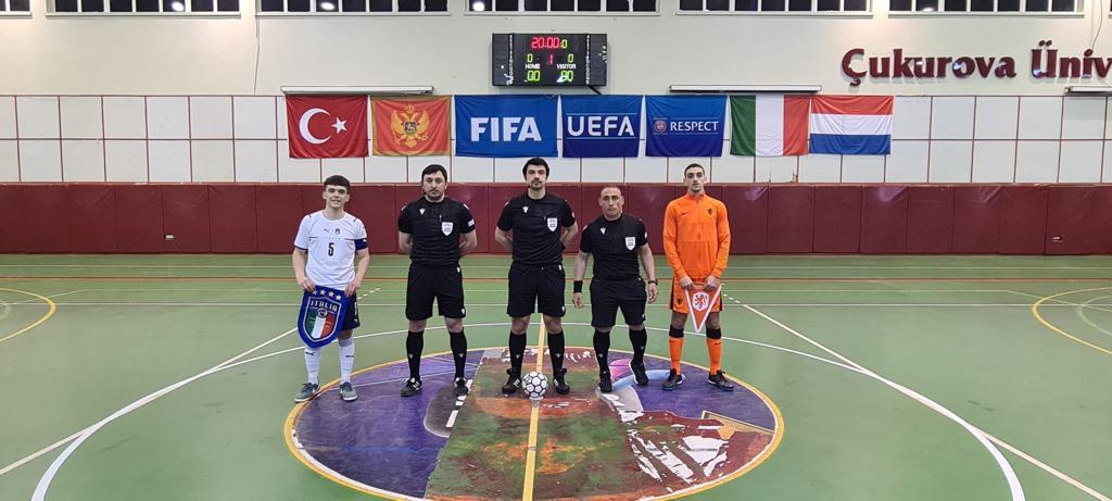 Un'altra prova convincente, un'altra vittoria che porta gli Azzurrini al girono di riposo con la consapevolezza del primo posto in classifica. La Nazionale di futsal Under 19, dopo il successo all'esordio contro la Turchia padrona di casa, nella seconda sfida del Main Round ad Adana si impone 3-2 contro i Paesi Bassi e prende la testa del girone in solitaria. Nell'altro match di giornata, la Turchia ha battuto 4-1 il Montenegro. In classifica l'Italia guida a sei punti, Montenegro e Turchia inseguono a quota tre, con i Paesi Bassi fanalino di coda a zero. Agli Azzurrini "basterà" un pari nell'ultima giornata, sabato alle 14 contro il Montenegro stesso, per staccare il pass per la Final Eight, a cui si qualifica solo la prima del girone.