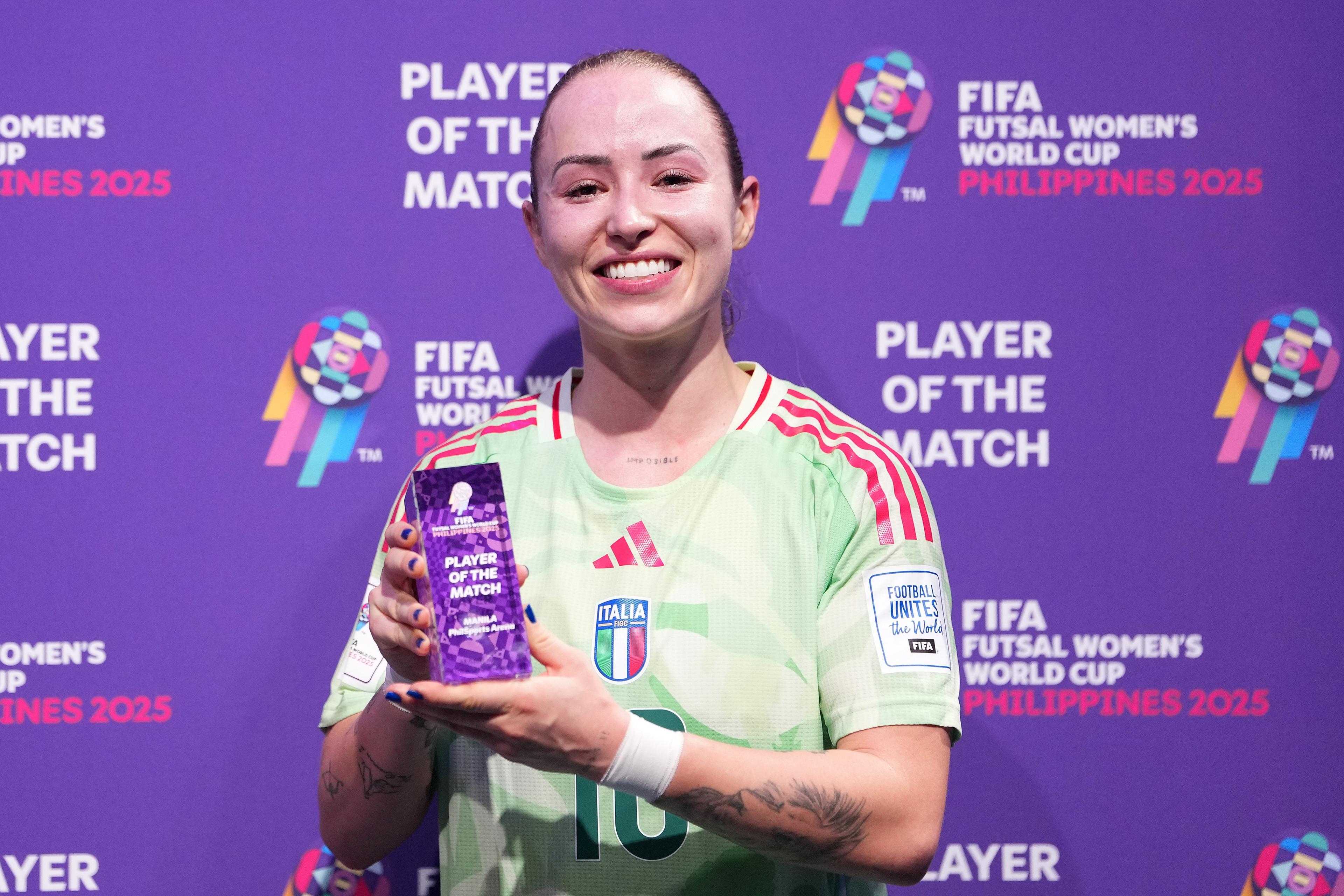 SALVATORE E VANELLI. A fine partita le voci dei protagonisti, partendo dall’allenatrice delle Azzurre Francesca Salvatore: “Il risultato ottenuto rappresenta il sunto di tutto ciò che abbiamo costruito in questi anni. Abbiamo dimostrato di avere carattere, di essere una squadra forte che non si è scomposta neanche sotto di un gol. È stata una grande prova di forza, perché è stata molto più dura di quanto ci aspettassimo: siamo usciti con tanta esperienza in più, ora inizia un’altra fase del Mondiale. Siamo rimaste in otto, chiunque è fortissimo: siamo preparate a questo livello, siamo in palla e da domani penseremo al Portogallo”. Eletta Player of the Match Gaby Vanelli racconta: “Sapevamo sarebbe stata una gara molto intensa e dura, abbiamo sofferto e il risultato è venuto fuori piano piano. Sono felice per tutto il sacrificio che la squadra ha messo su ogni pallone. Il premio è un’emozione, ma non è solo mio ma di tutte le mie compagne di squadra”.