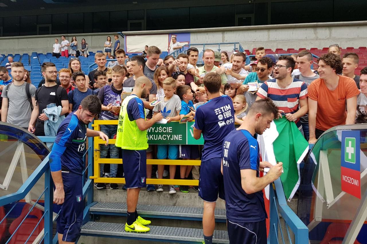 Davanti a circa 400 tifosi, la squadra ha svolto questa mattina una seduta di allenamento sul terreno di gioco dello stadio del ‘Wisla Cracovia’: lavoro defaticante per chi è sceso in campo ieri, allenamento più intenso per il resto del gruppo. Poi spazio ad autografi e selfie per la gioia dei tanti bambini accorsi per salutare gli Azzurrini.