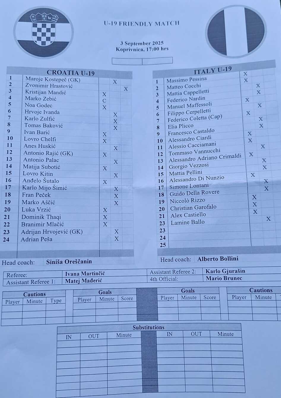 Gli Azzurrini torneranno in campo sabato 6 settembre alle ore 17, ancora al City Stadium di Koprivnica, per affrontare la Germania. "Non abbiamo molto tempo per sperimentare - conclude - perché dobbiamo preservare la base di questo gruppo e portarla avanti. Gli altri, mi riferisco ai ragazzi nuovi e a quelli che tornavano in Nazionale, dovranno essere bravi a sfruttare nel migliore dei modi le opportunità che concederò loro nelle prossime partite".