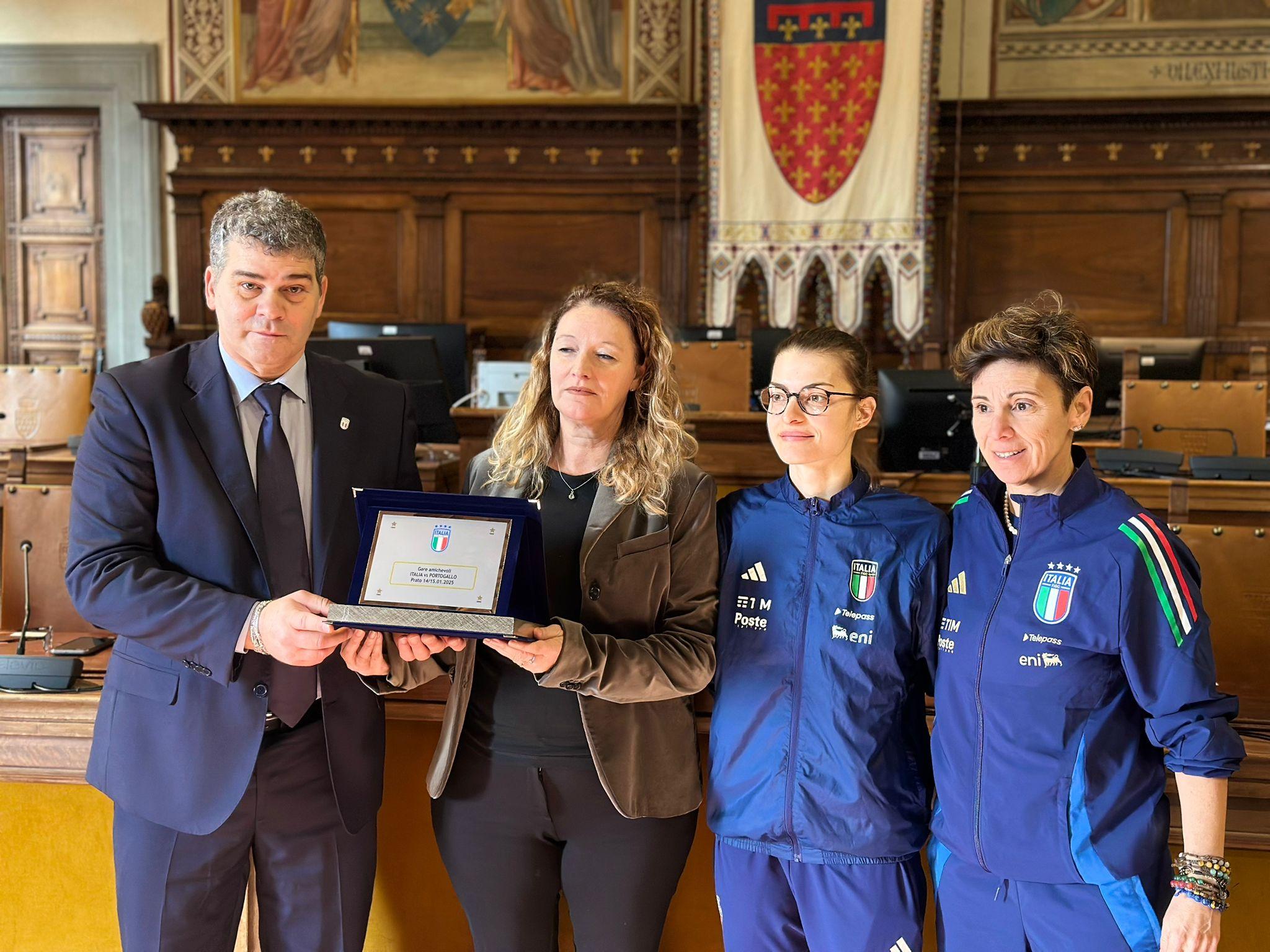 È stata presentata questa mattina, presso il Salone Consiliare del Comune di Prato, la doppia amichevole che vedrà impegnata la Nazionale femminile di futsal con il Portogallo. Martedì 14, alle ore 20 in diretta su Vivo Azzurro TV, e mercoledì (sempre alle 20) le ragazze di Francesca Salvatore sfideranno una delle migliori squadre a livello europeo, che le Azzurre si ritroveranno anche nell’Elite Round delle Qualificazioni al Mondiale del prossimo novembre: a marzo, infatti, al Pala Roma di Montesilvano, ci sarà proprio il Portogallo, oltre a Svezia e Ungheria, sul cammino che separa l’Italfutsal dalla rassegna iridata in programma nelle Filippine.
