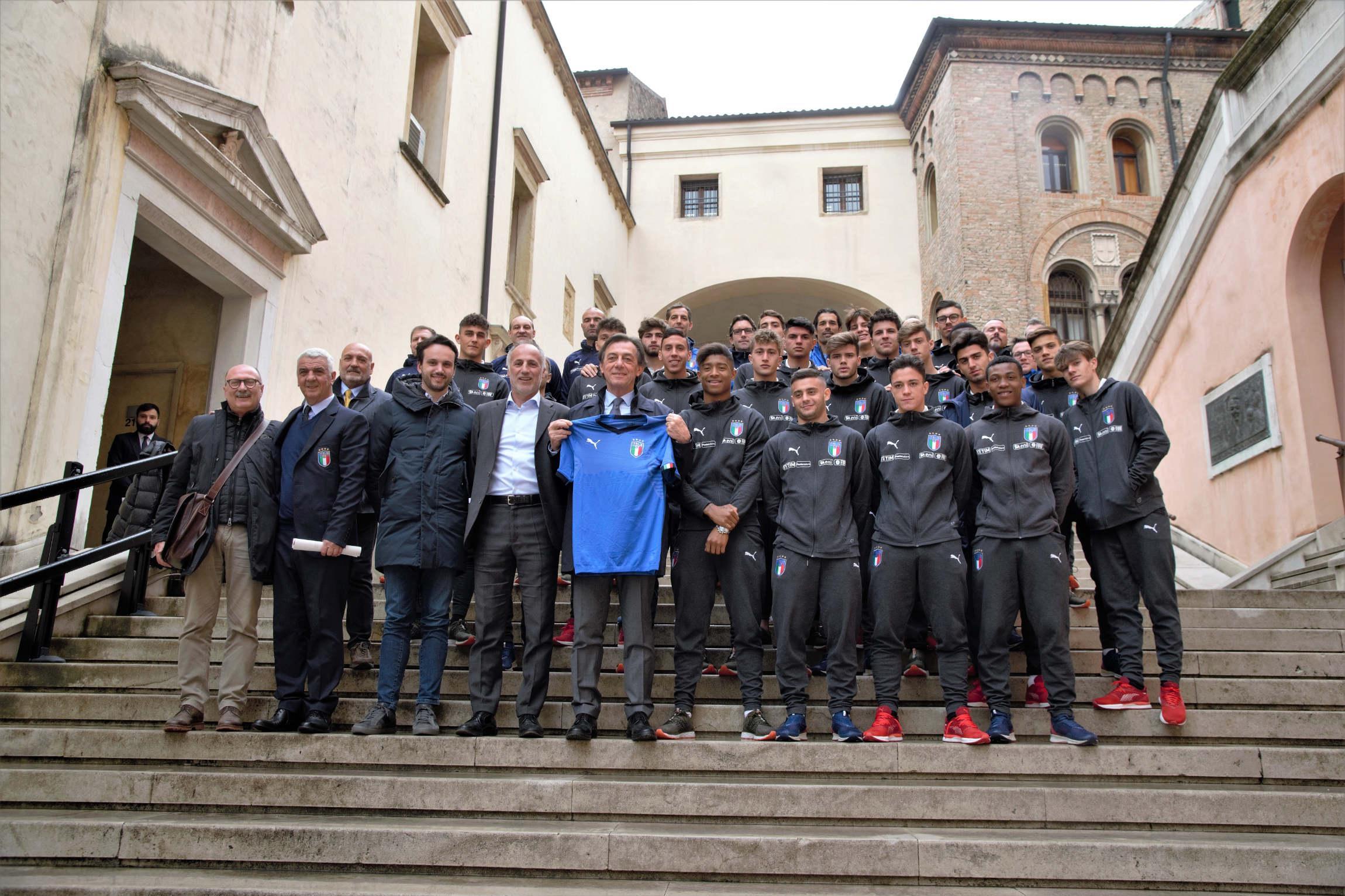 Oggi al Comune di Padova si è svolta la conferenza stampa di presentazione della fase élite del Campionato Europeo Under 19, che dal 20 al 26 marzo si svolgerà in Veneto. Presente il Sindaco della città, Sergio Giordani, il presidente della LND Veneto, Giuseppe Ruzza, il capo delegazione della Nazionale, Evaristo Beccalossi, il tecnico, Federico Guidi, il capitano Davide Bettella e la squadra al completo.