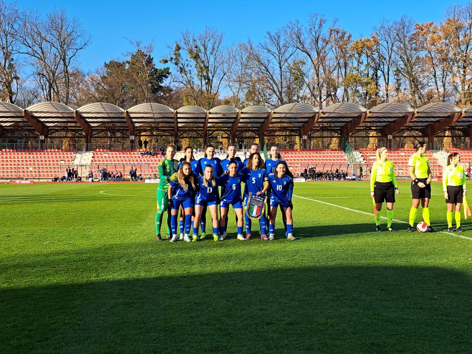 ITALIA (3-4-3): Mustafic; Consolini, Cocino, Gallo; Sciabica (dal 29’st Gemmi), Testa (dal 1’st Fadda), Cherubini, Tosello; Pellegrino Cimò (dal 44’st Ventriglia), Ferraresi, Perselli (dal 13’st Zamboni). A disp: Belli, Pizzuti, Pieri, Gallina, Tironi. All: Matteucci.