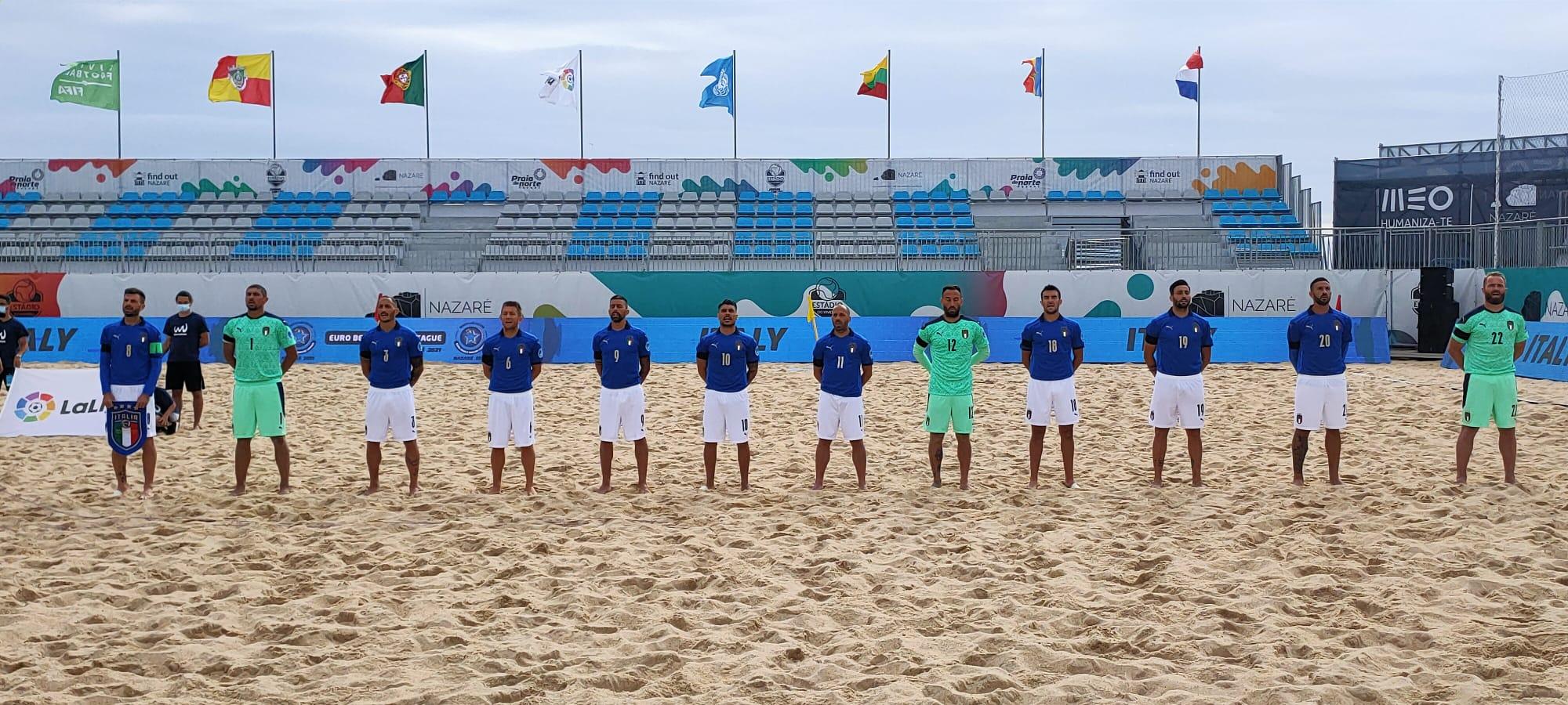 L’Italia, con la fase finale dell’Europeo già in tasca dopo le prime due giornate (successi contro Francia e Polonia, quest’ultimo ai rigori), chiude la fase di qualificazione con una vittoria per 6-5 contro la Svizzera. Sulla sabbia di Nazarè, la squadra di Emiliano Del Duca festeggia il primo posto nel gruppo 2 e ora può guardare con ottimismo alle qualificazioni mondiali, al via lunedì sempre sulla spiaggia portoghese. "Una grande partita, molto combattuta, contro una squadra dalle qualità fisiche e tecniche – le parole del c.t. azzurro -. I ragazzi sono stati bravi, un gruppo fantastico che con tenacia ha tenuto botta e ha conquistato il primo posto nel girone. Il primo obiettivo è stato centrato, da domani la testa tutta sulle qualificazioni mondiali". Grande protagonista il solito Gabriele Gori, autore di un poker: "C’è grande soddisfazione per questo risultato ottenuto con sacrificio: siamo stati forti – dice -. Non abbiamo mai mollato, siamo stati bravi a portare la vittoria a casa. Ora stacchiamo per qualche ora, ma la nostra concentrazione va subito sulla qualificazione al mondiale". L'Italia ha giocato con il lutto al braccio nel ricordo di Giampiero Boniperti.
