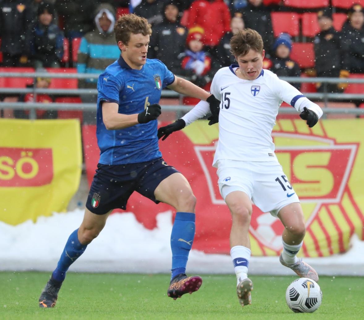 La partita. Nunziata mette in campo il 4-3-1-2, con tre new entry rispetto al primo match contro la Germania: in difesa, a destra, Zanotti al posto di Turicchia e Ghilardi al centro al posto di Coppola, lasciato a riposo; a centrocampo Casadei entra al posto di Giovane. I finlandesi cominciano forte: baricentro alto, aggressivi sulla trequarti ma, il loro, è un atteggiamento che dura poco. Già al 16’ sono costretti a salvare sulla linea un tiro di Miretti per poi capitolare al 21’ dopo un atterramento in area di Mulazzi: Miretti si incarica del tiro e non sbaglia. Un paio di tentativi di andare in gol per i finnici e ci pensa Gnonto, nell’arco di due minuti, a risolverla definitivamente: al 42’ scambia con Fabbian e dal limite dell’area il suo sinistro va nell’angolo basso alla sinistra del portiere. La Finlandia va in confusione: un minuto dopo, il portiere pasticcia su un rinvio, ne approfitta di nuovo l’attaccante del Zurigo che incrocia il tiro e insacca la sua seconda rete, portando complessivamente a tre i gol realizzati in due partite, momentaneamente capocannoniere di questo girone.