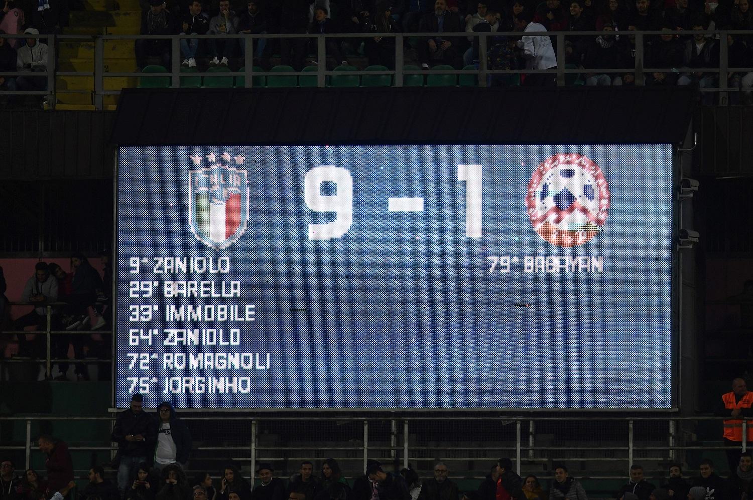 È lì che nasce la squadra che diventa invincibile: il mese successivo, a Genk in Belgio, sempre al 94’ il gol di Politano piega gli Stati Uniti e avvia la serie di 11 vittorie consecutive, fino al rotondo successo con l’Armenia a Palermo nel novembre 2019 (l’ultima gara prima del Covid), nuovo primato azzurro che supera le 9 vittorie di Pozzo (1938-39); in quella striscia di 11 c’è anche un altro primato: l’en plein nelle qualificazioni a EURO 2020 (10 vittorie su 10), prima volta per l’Italia in un girone verso Europeo o Mondiale. La ciliegina sulla torta di questo 2019 è il 9-1 all’Armenia: 9 reti segnate in una gara dopo 71 anni (1948, Italia-Usa 9-0, vittoria più larga della storia), 4ª vittoria nella storia con 8 gol di scarto (le altre nel 1928, 1936 e 1952).