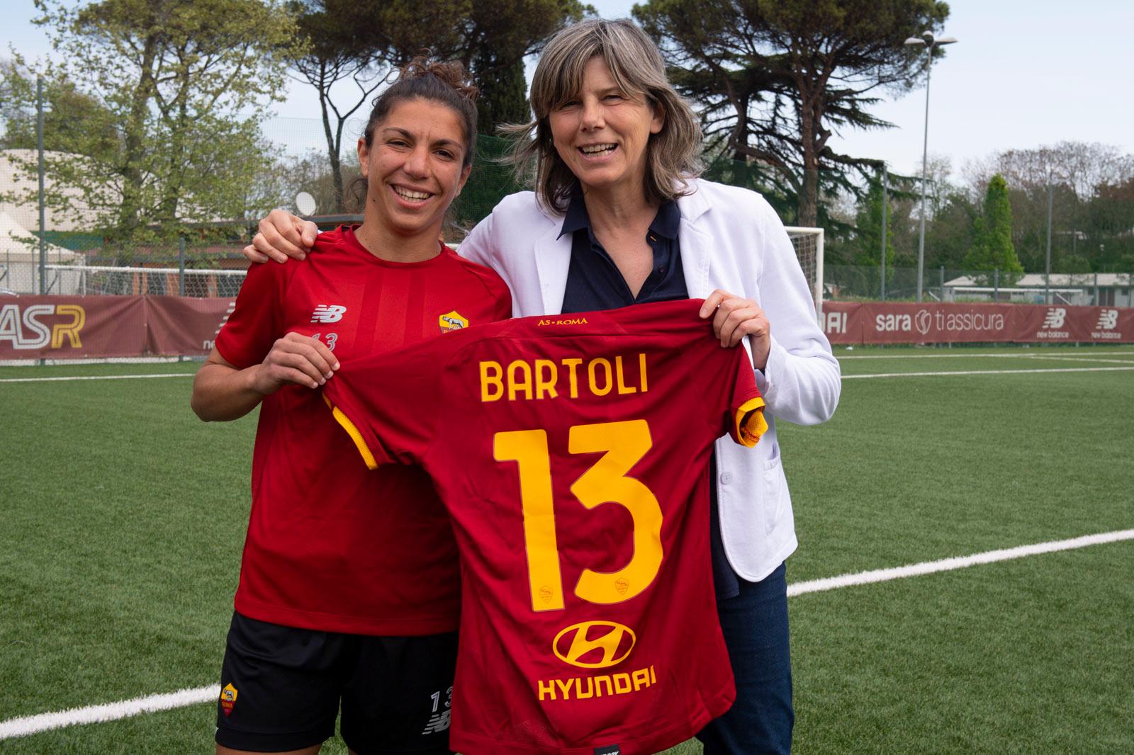 Dopo aver salutato il gruppo e le tante calciatrici che fanno parte delle selezioni azzurre, a partire da Elisa Bartoli, che le ha regalato la sua maglia da gioco, Milena Bertolini ha seguito l’allenamento insieme alla sua ex compagna di squadra Betty Bavagnoli, Head of Women’s Football del club capitolino. Terminato il lavoro sul campo, è stata organizzata una riunione tecnica con l’allenatore Alessandro Spugna e i suoi collaboratori che ha rappresentato, come di consueto, un importante momento di confronto tra i rispettivi staff tecnici.