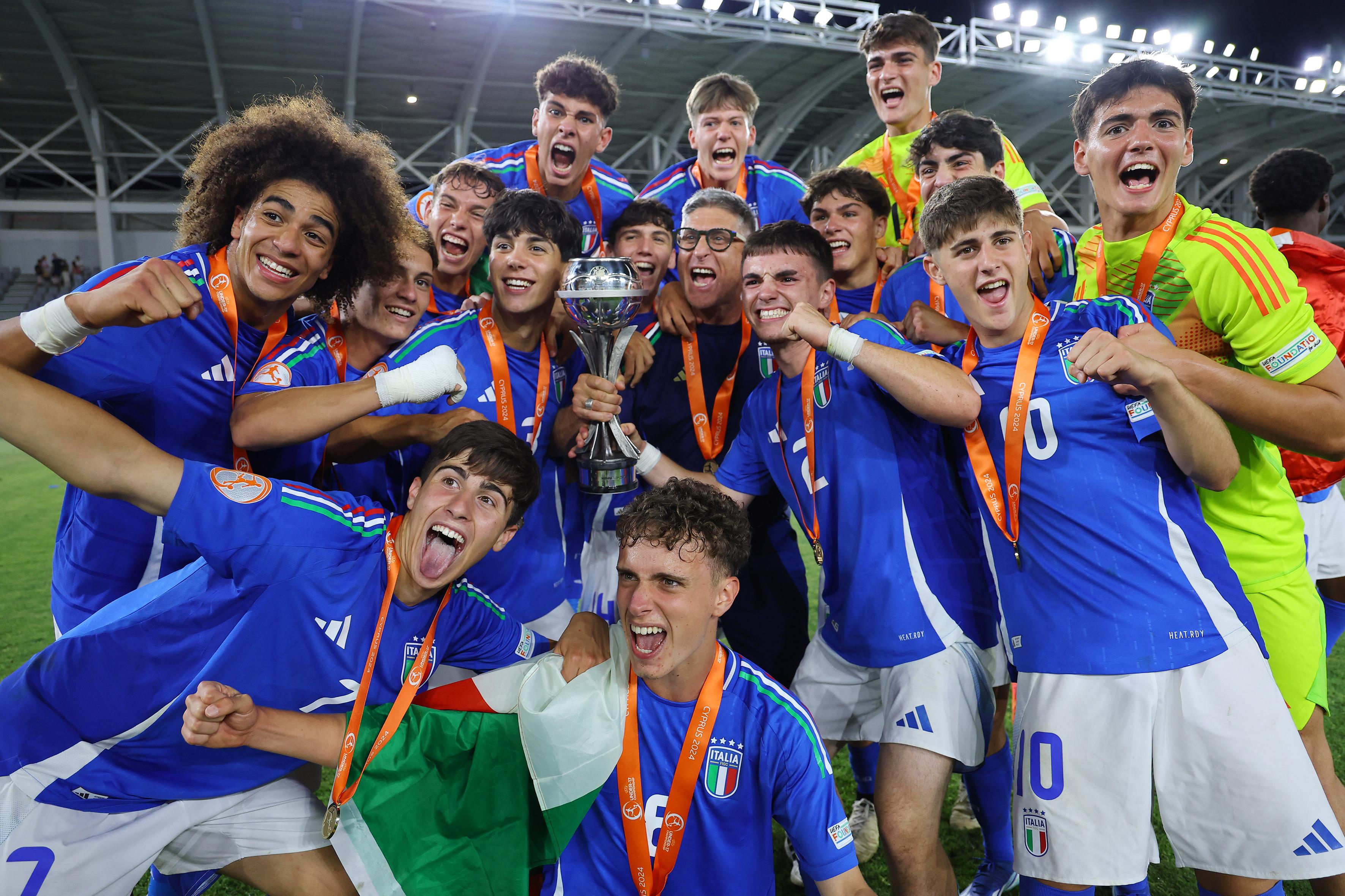Quella di Limassol, per l'Italia Under 17, è stata una storica prima volta. A partire da ieri sera, però, e ancora per circa un mese, gli Azzurrini saranno detentori di entrambi i titoli europei, conquistati a meno di un anno l’uno dall’altro. Da una parte il ricordo del successo del luglio 2023 dei ragazzi Under 19 di Bollini, che per altri 30 giorni saranno ancora campioni d’Europa in carica, dall’altra quelli di Favo che ieri sera hanno regalato una gioia a tutti i tifosi azzurri. L’eco del trionfo del luglio 2023 è ancora molto viva nella memoria: la vittoria ottenuta a Malta fu incredibile e proprio quel titolo verrà rimesso in gioco a partire dal 15 luglio in Irlanda del Nord. Ora, sotto la guida di Bernardo Corradi, il nuovo gruppo dei vari Lipani, Bartesaghi e Pafundi cercherà di ottenere uno storico bis. Mai, la Nazionale Under 19 è riuscita a vincere due edizioni consecutive dell’Europeo, traguardo nella storia ottenuto solo dalla Spagna in due occasioni, 2006-2007 e 2011-2012.