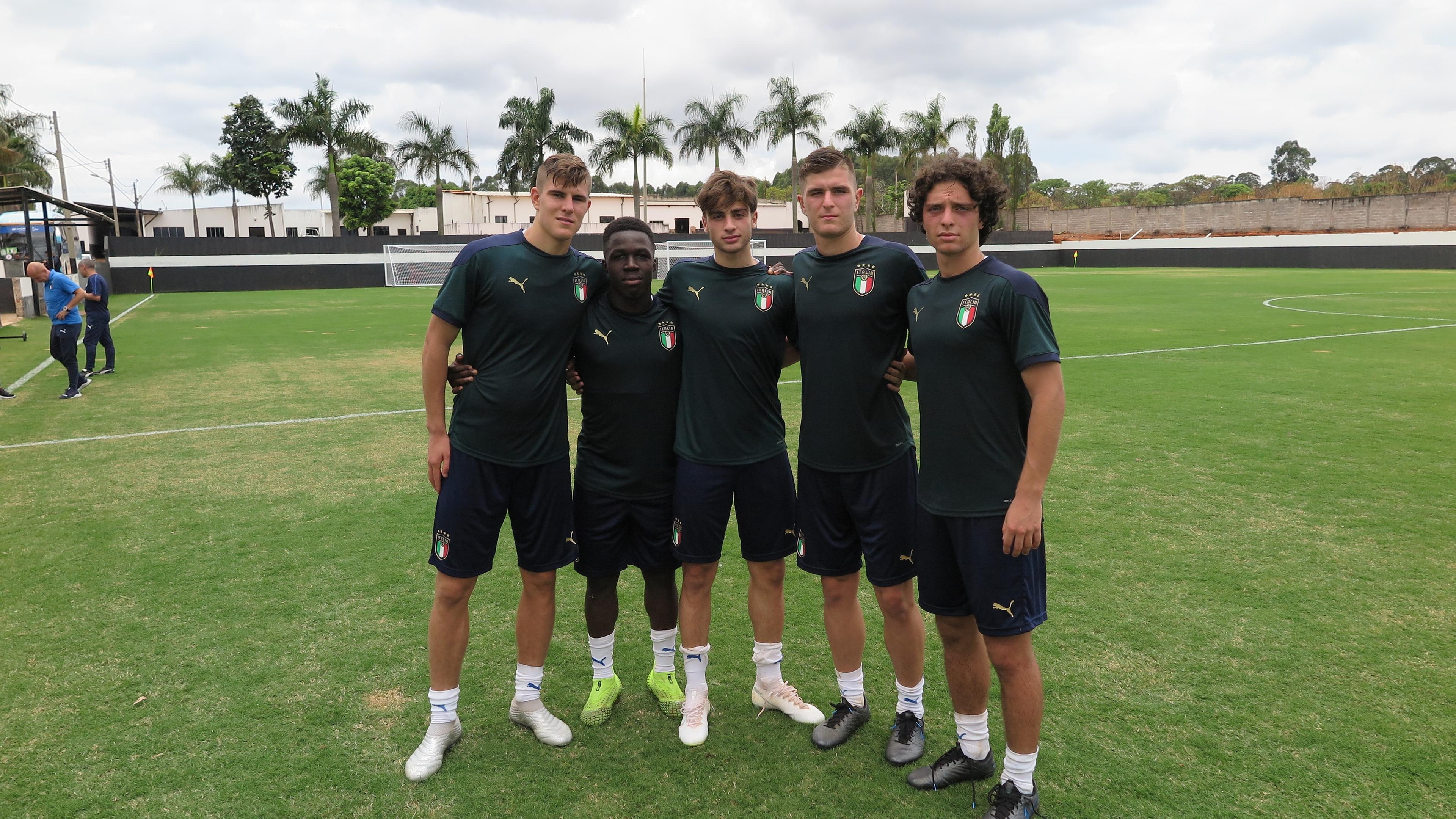 nella foto in alto, da sx, i 5 giocatori dell'Inter Moretti, Gnonto, Oristanio, Pirola e Boscolo Chio