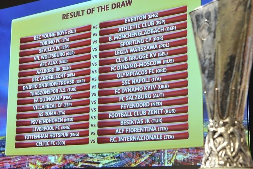 Il sorteggio per i sedicesimi di finale di Europa League poteva essere decisamente più benevolo per le cinque italiane coinvolte, che hanno trovato avversarie ostiche e con una buona esperienza nelle coppe europee. Il Torino dovrà vedersela con l'Athletic Bilbao, squadra basca 'retrocessa' dalla Champions League, alla quale ha avuto accesso eliminando il Napoli agli spareggi. I partenopei incontreranno i turchi del Trabzonspor, eliminati allo stesso turno nella scorsa edizione dalla Juventus. La Roma, uscita dalla massima competizione continentale, se la vedranno con gli olandesi del Feyenoord. La Fiorentina ha pescato gli inglesi del Tottenham Hotspur, l'Inter, infine, giocherà contro gli scozzesi del Celtic Glasgow.Di seguito tutti gli accoppiamenti (foto uefa.com):Young Boys-EvertonTORINO-Athletic BilbaoSiviglia-Borussia MoenchengladbachWolfsburg-Sporting LisbonaAjax-Legia VarsaviaAalborg-BruggeAnderlecht-Dinamo MoscaDnipro-OlympiacosTrabzonspor-NAPOLIGuingamp-Dinamo KievVillarreal-SalisburgoROMA-FeyenoordPsv-ZenitLiverpool-BesiktasTottenham-FIORENTINACeltic-INTER