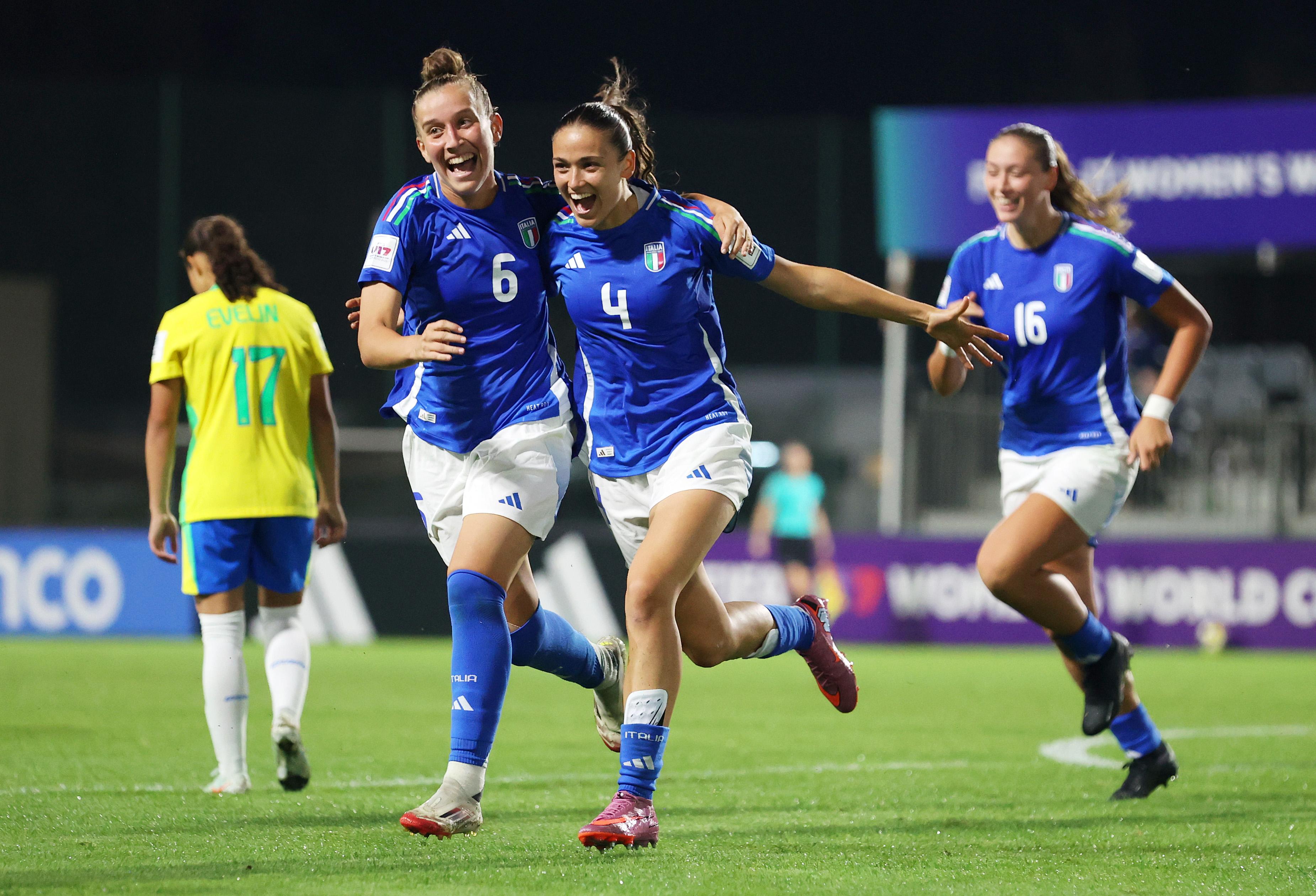 Straordinarie. Ma anche brave e mature oltre l’età anagrafica, capaci di ribattere colpo su colpo a un avversario di livello assoluto e di centrare la terza vittoria su tre gare in questo Mondiale: la Nazionale femminile Under 17 supera per 4-3 il Brasile al termine di una gara dai mille volti e dalle mille sfumature – tecniche, tattiche, emotive e anche ricche di storia – chiudendo così il girone a punteggio pieno. Un risultato straordinario che vale gli ottavi di finale da prima della classe: adesso, per conoscere l’avversaria da affrontare martedì prossimo allo stadio Olimpico di Rabat, bisognerà attendere le partite di domani. Comunque, sarà una terza classificata di un altro raggruppamento. E senz’altro sarà un match che verrà affrontato con quella convinzione maturata attraverso non solo tre incontri di grande spessore, ma lungo un percorso di crescita continua.