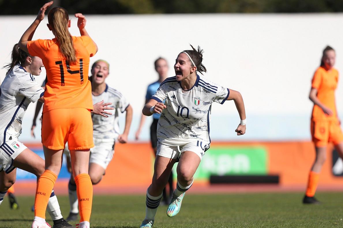 LA PARTITA. E pensare che il match si era messo in salita, con il rigore procurato e trasformato al 23’ da Lont, atterrata in uscita da Sabrina Nespolo dopo un retropassaggio azzardato di Arianna Pieri. I Paesi Bassi hanno sfiorato il raddoppio con Haizoun, che servita da Lont in chiusura di tempo ha accarezzato il palo con un diagonale rasoterra. A inizio ripresa il cambio che si rivelerà decisivo: fuori Rosanna Ventriglia, dentro Alessia Guglielmini. Dopo un quarto d’ora l’attaccante del Sassuolo si è guadagnata il rigore dell’1-1, incaricandosi della battuta e spiazzando il portiere olandese Van Der Vliet. Nespolo è quindi salita in cattedra opponendosi alle conclusioni di Proost e Haizoun e a otto minuti dal termine, per una trattenuta prolungata ai danni di Giulia Galli (Roma), l’arbitro Gama ha fischiato il terzo rigore di giornata: sul dischetto si è presentata ancora Guglielmini, che con un destro secco e angolato ha messo a segno il gol che vale i primi tre punti nel torneo.