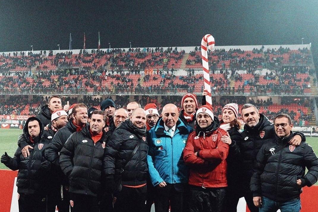 Nella foto grande in alto, scattata allo stadio di Monza prima della sfida contro la Juventus di venerdì scorso, potete vedere Adriano Galliani (vicepresidente vicario e amministratore delegato del club brianzolo) in posa sul campo insieme alla delegazione dell'Arcobaleno, la squadra DCPS 'adottata' dal Monza. Nella foto sopra a sinistra, uno scorcio della sfilata del San Prospero - Sassuolo for Special e di altre squadre DCPS emiliane, invitate dal club neroverde prima di Sassuolo-Roma di domenica 3.