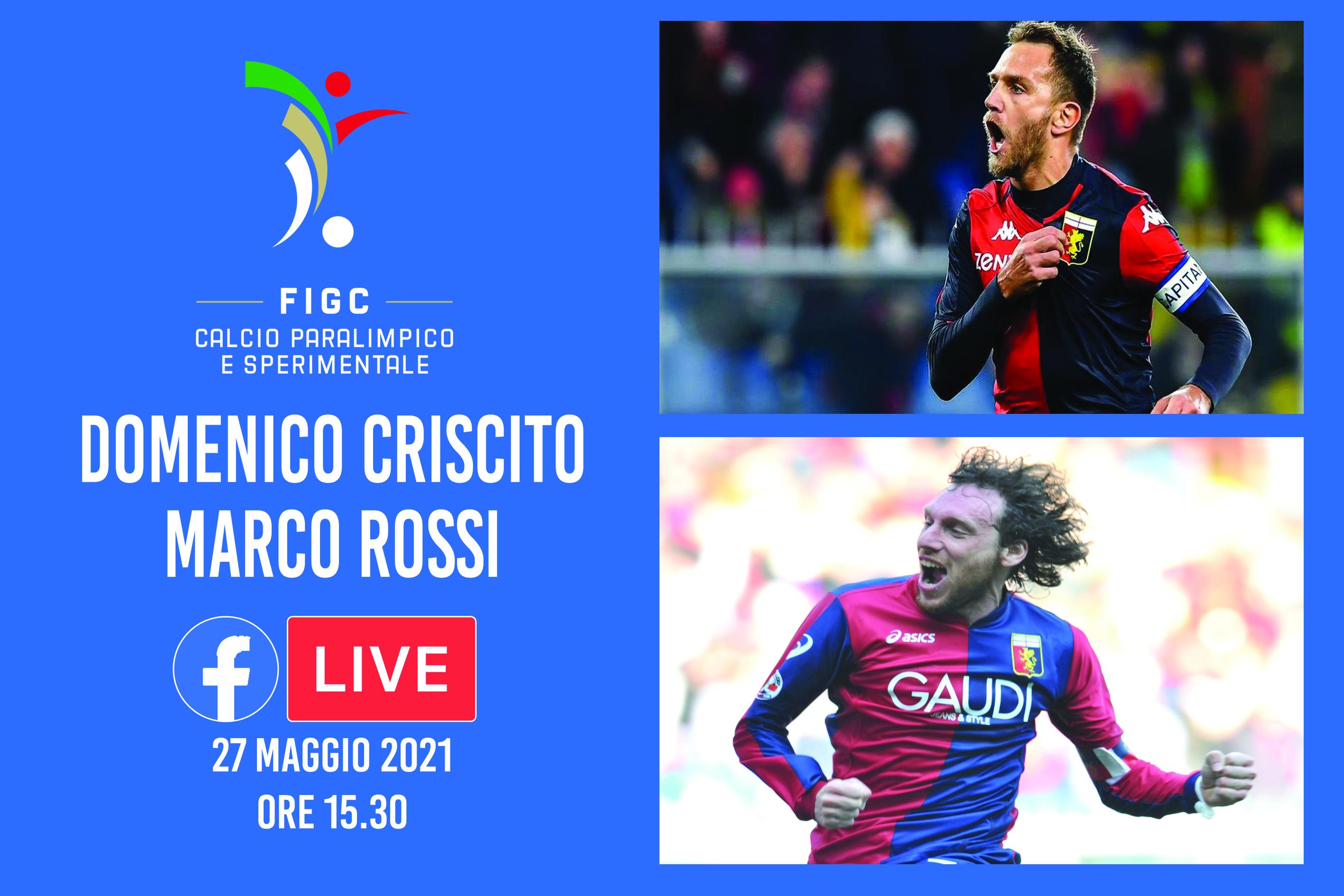 Domani, giovedì 27 maggio 2021, alle ore 15:30 Domenico "Mimmo" Criscito, difensore e Capitano del Genoa, e Marco Rossi, Club Manager e indimenticato Capitano rossoblù, incontreranno tramite la piattaforma Cisco Webex Meetings i calciatori e le calciatrici della DCPS in diretta live sulla pagina Facebook della Divisione e sul sito ufficiale https://dcps.figc.it per rispondere alle domande dei nostri atleti.
