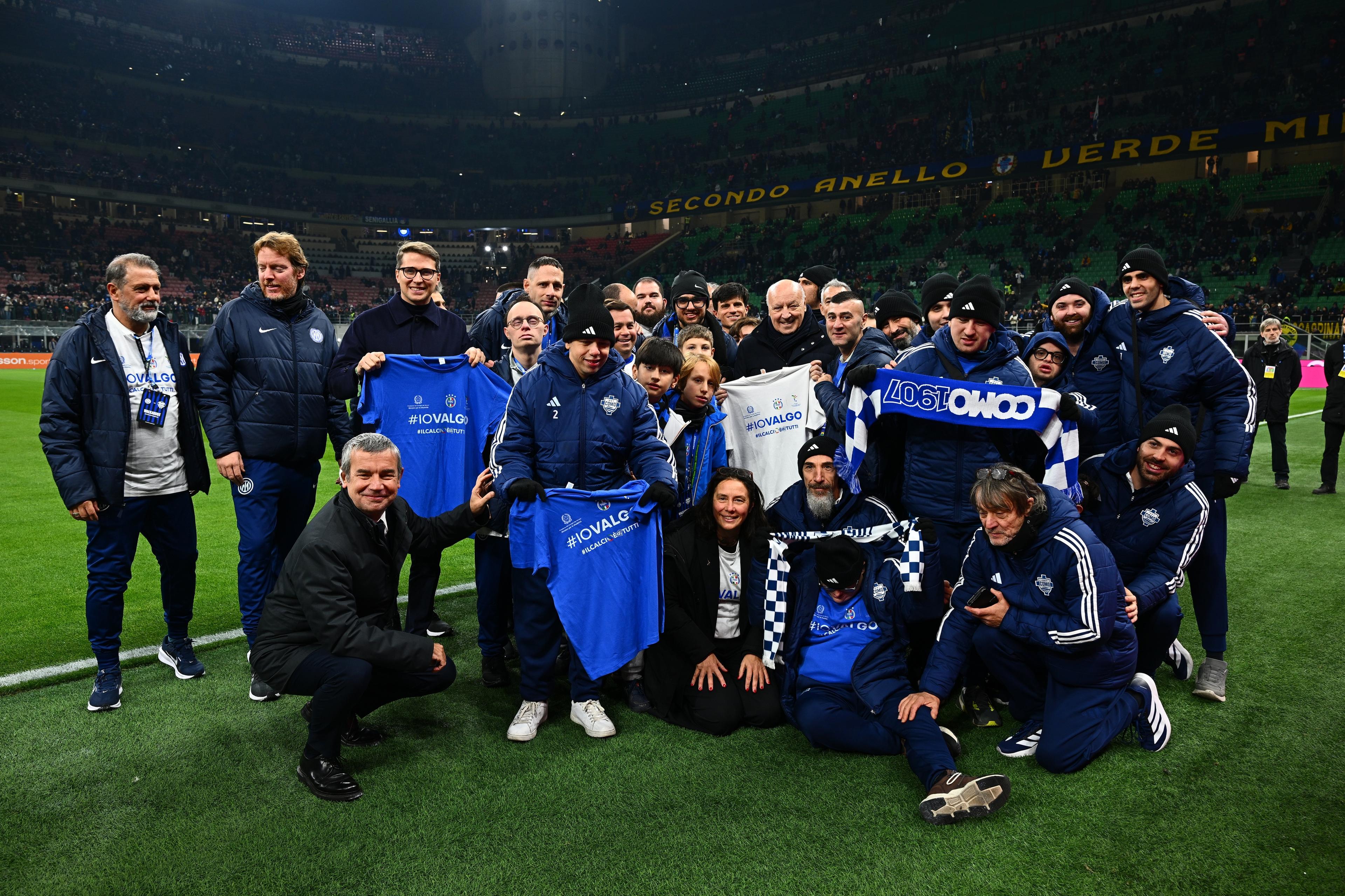 Con il Ministero per le Disabilità sono state realizzate le bellissime magliette con le scritte #IlCalcioèdiTutti #IoValgo (per trasmettere un messaggio chiaro: il valore di ogni persona è unico, non negoziabile) e ci si è dati appuntamento allo stadio Meazza, per Inter-Como, a cui ha assistito il ministro Alessandra Locatelli, che prima del match è scesa in campo per salutare i calciatori della Divisione Calcio Paralimpico e Sperimentale tesserati per le 'gemellate' dei due club (la Sporting 4E e la Links).