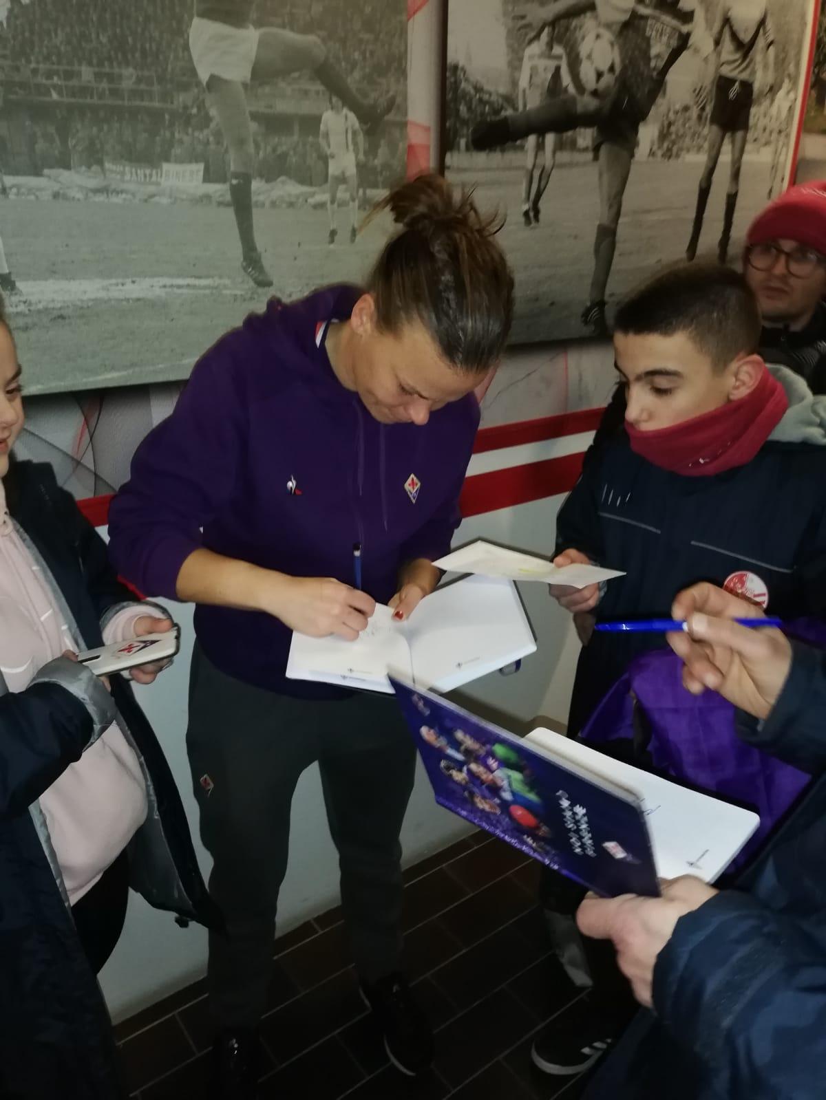 " Dopo aver assistito e tifato per le ragazze impegnate in campo- commenta soddisfatto Claudio Beretta- i ragazzi hanno avuto il piacere di conoscere le giocatrici della Fiorentina e tutto lo staff tecnico in un incontro che è stato molto emozionante e caratterizzato da grande cordialità e sincera disponibilità da parte di tutti. Atleti che si incontrano con altri atleti, ognuno con le proprie caratteristiche e protagonisti in diversi campionati, ma tutti con la medesima caparbietà e voglia di onorare la prestigiosa maglia viola indossata con orgoglio".