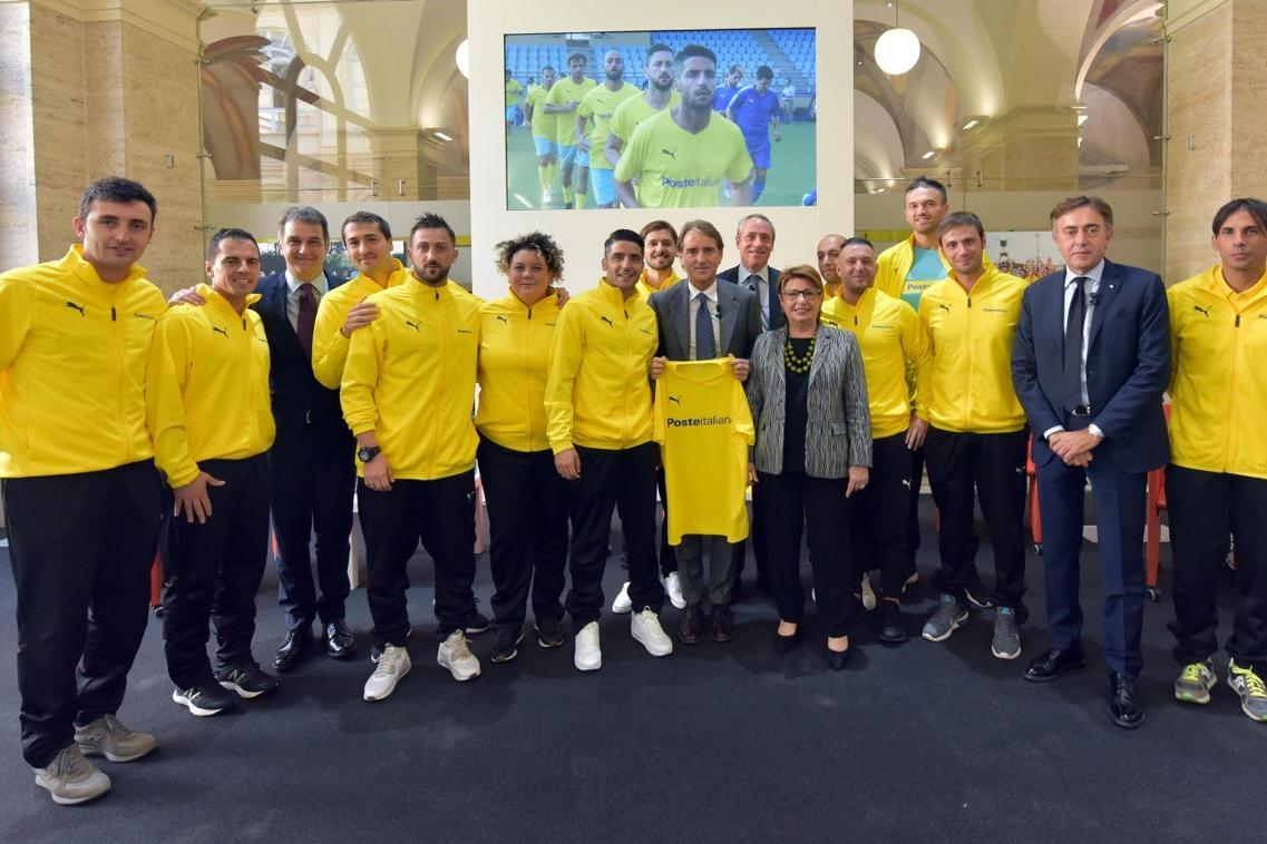 Il Direttore generale della FIGC e vice presidente UEFA Michele Uva e il Commissario tecnico della Nazionale Roberto Mancini sono intervenuti questa mattina a Roma, presso la Sala Conferenze dell’ufficio postale di Piazza San Silvestro, alla cerimonia di premiazione della squadra di Poste Italiane vincitrice della "Azzurri Partner Cup", il torneo di calcio a 7 organizzato dalla FIGC tra le aziende Top Sponsor della Nazionale.