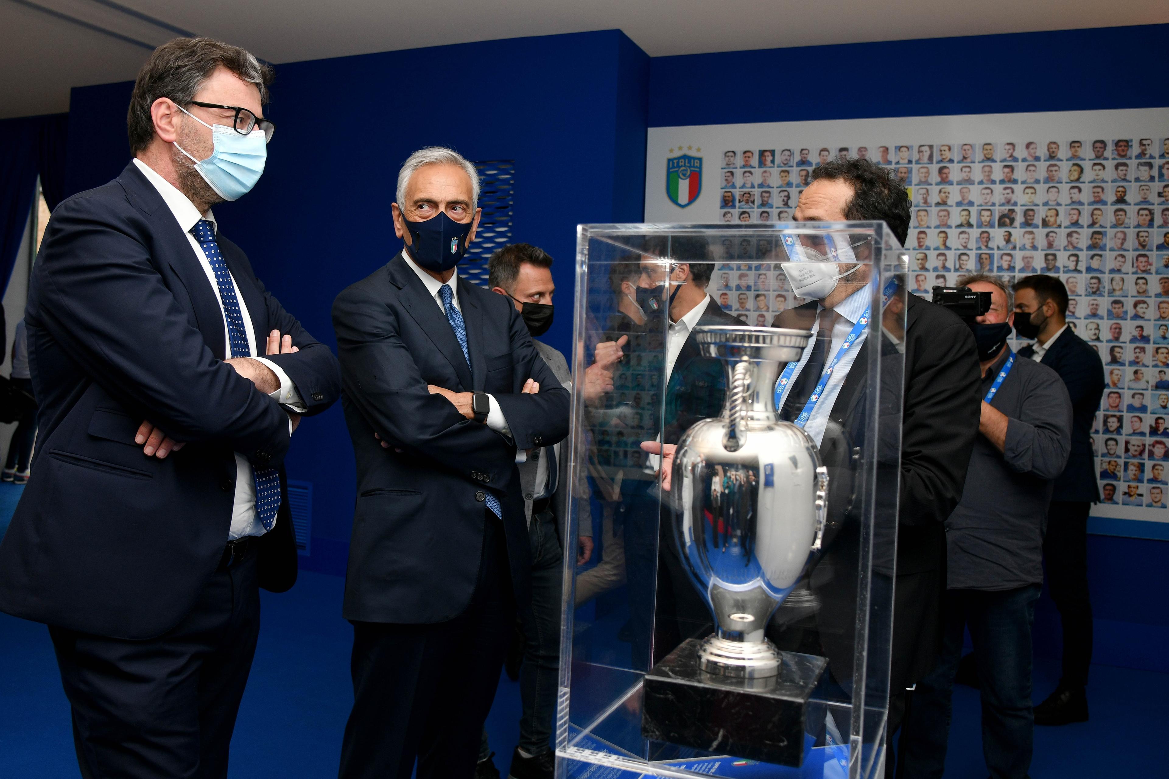 La lunga giornata di ‘Casa Azzurri’, la struttura che dal 1998 accompagna l’Italia in occasione dei grandi tornei internazionali, è iniziata in mattinata con la riunione del Consiglio Federale per poi proseguire con la presentazione alla stampa da parte del Ministro Giorgetti e del presidente Gravina della campagna per la lotta alla contraffazione #loriginalevincesempre, realizzata dal Ministero in occasione di EURO 2020. Spazio poi alla firma di un accordo di cooperazione tra la FIGC e la Rappresentanza in Italia della Commissione europea, una partnership volta a valorizzare obiettivi e risultati dei progetti finanziati con i fondi europei che vedono la Federazione in qualità di capofila o partner.
