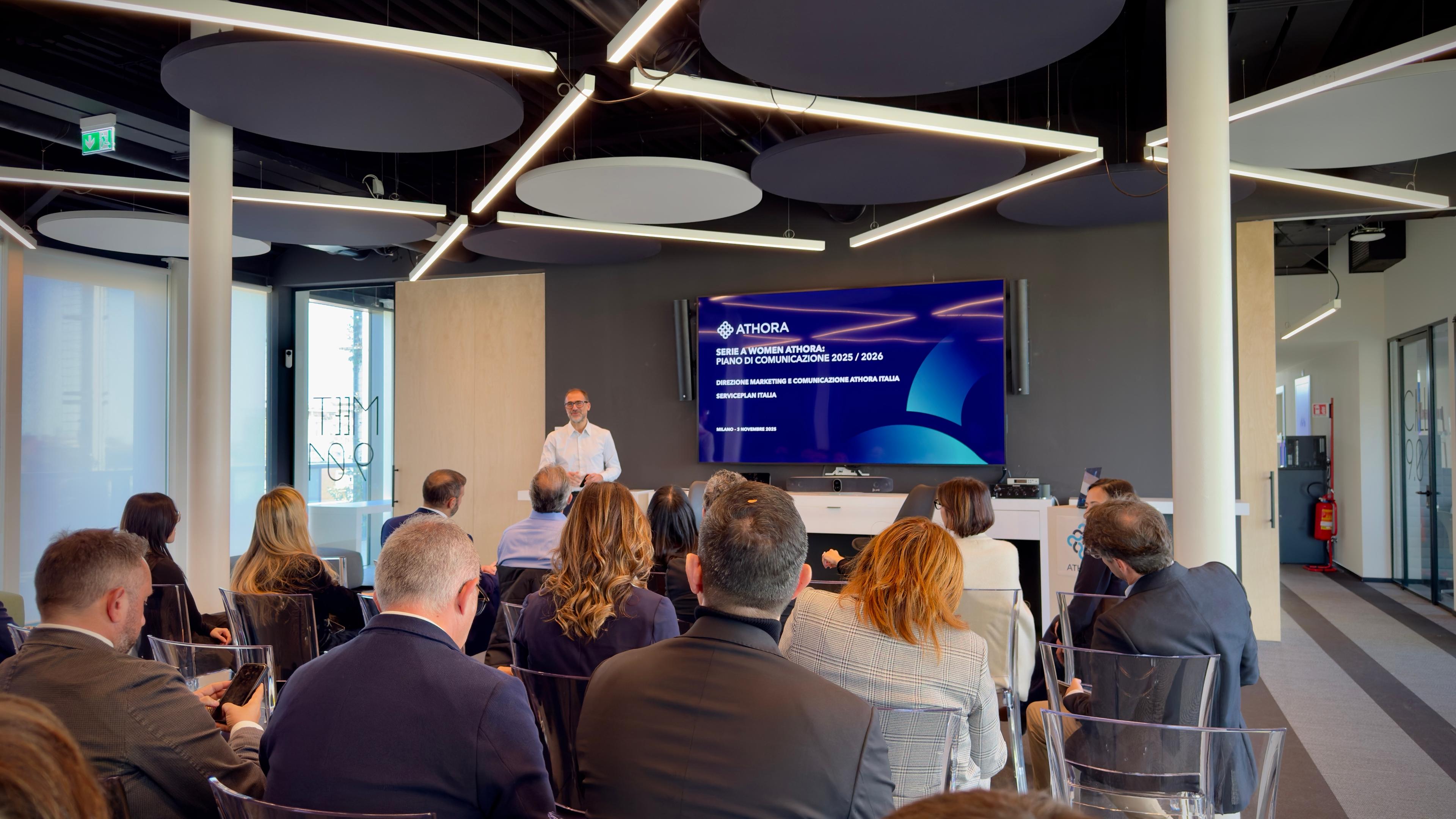Dopo la conferenza stampa di presentazione a Roma, si è svolto oggi a Milano il primo incontro tra i 12 club di Serie A Women e i rappresentanti di Athora Italia, da quest'anno title partner del campionato di Serie A. Un momento di condivisione e scambio di idee in cui i vertici della compagnia assicurativa vita parte del Gruppo Athora, tra i leader europei nel risparmio assicurativo e nella previdenza, hanno illustrato ai club le iniziative - a livello media, digital e di attivazione sui campi - in programma in questa stagione per rafforzare una partnership non soltanto commerciale ma anche valoriale.